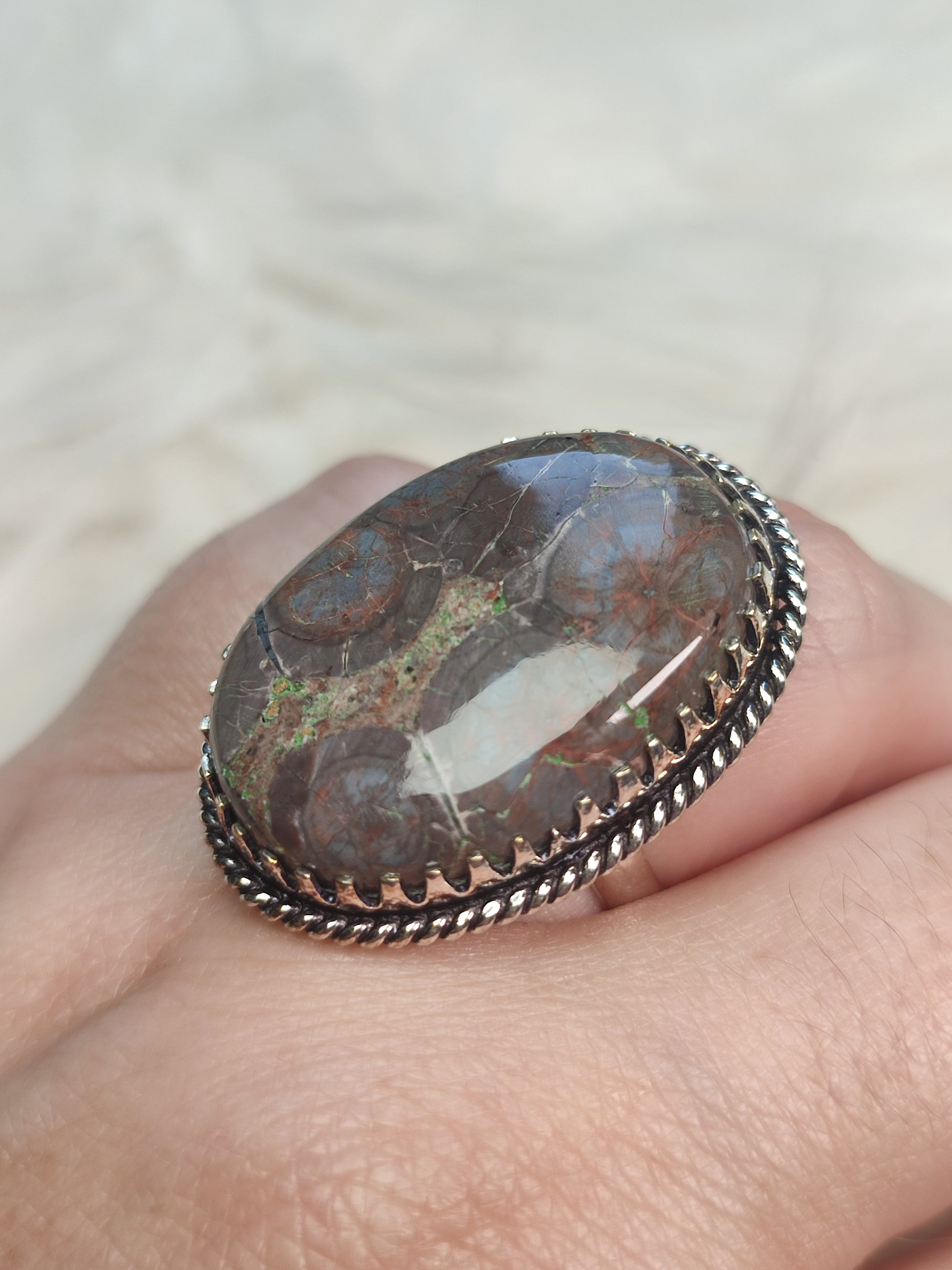 Anillo baño de plata con jaspe ojo de pájaro