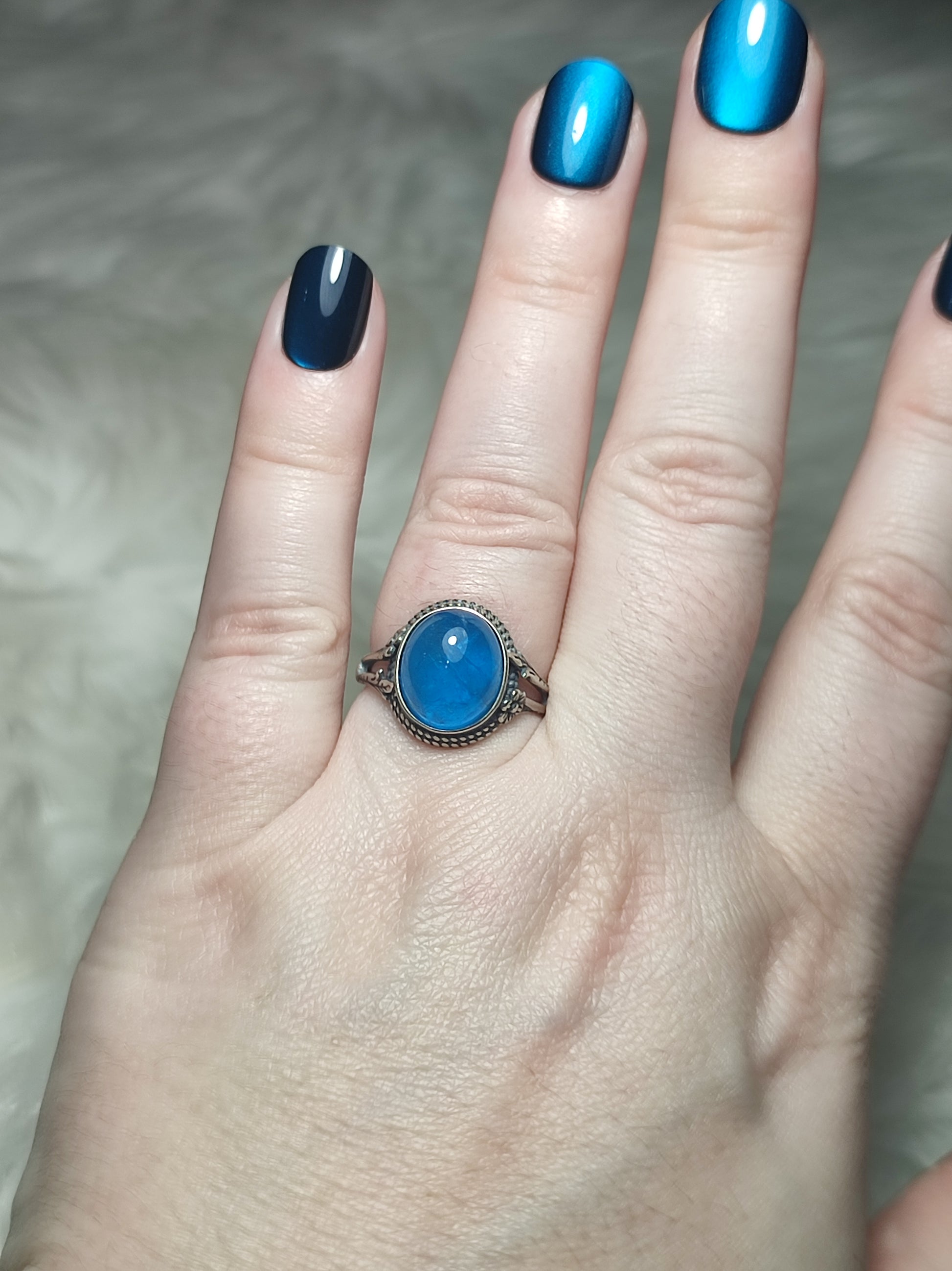 Anillo plata 925 con apatito azul - ajustable n° 17