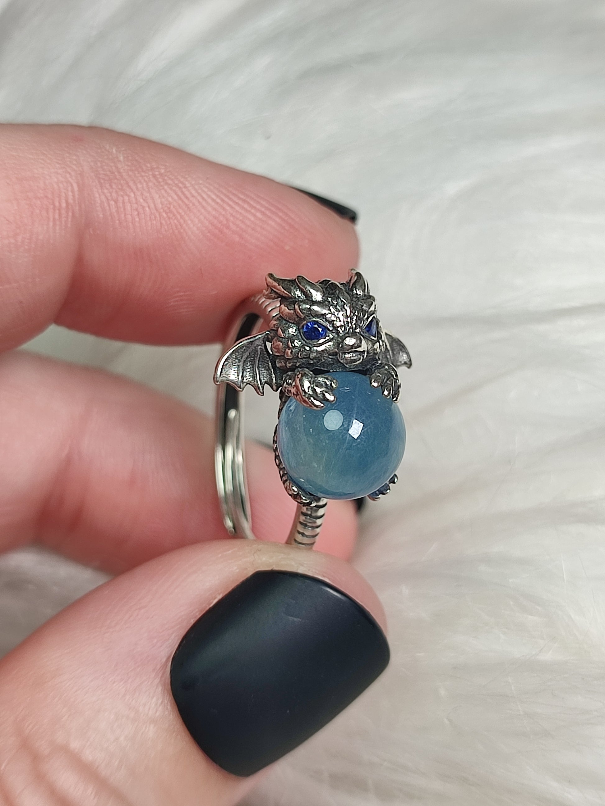 Anillo plata de ley 925 con aguamarina - Dragón bebé 305