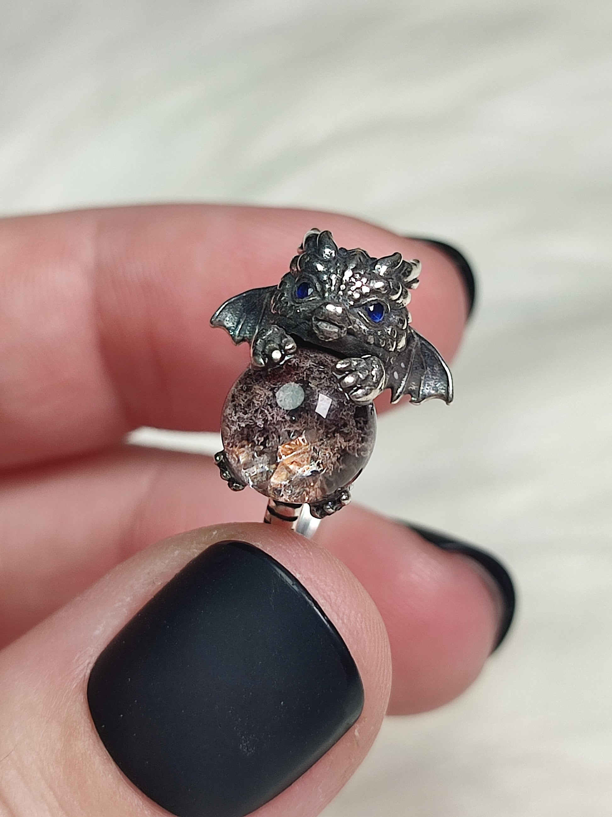 Anillo plata de ley 925 con cuarzo jardín - Dragón bebé 303
