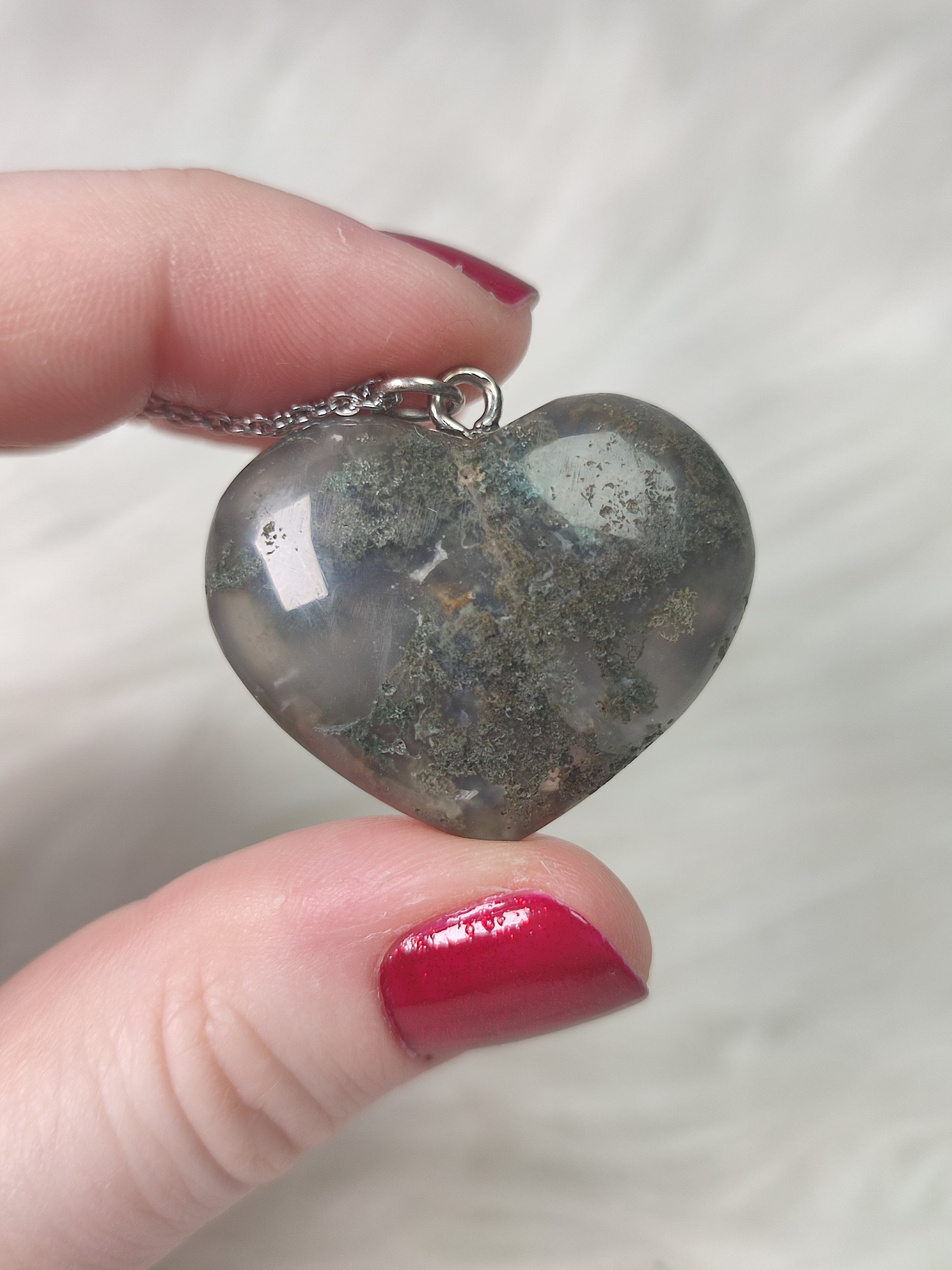 Colgante acero con corazón ágata musgo n° 225