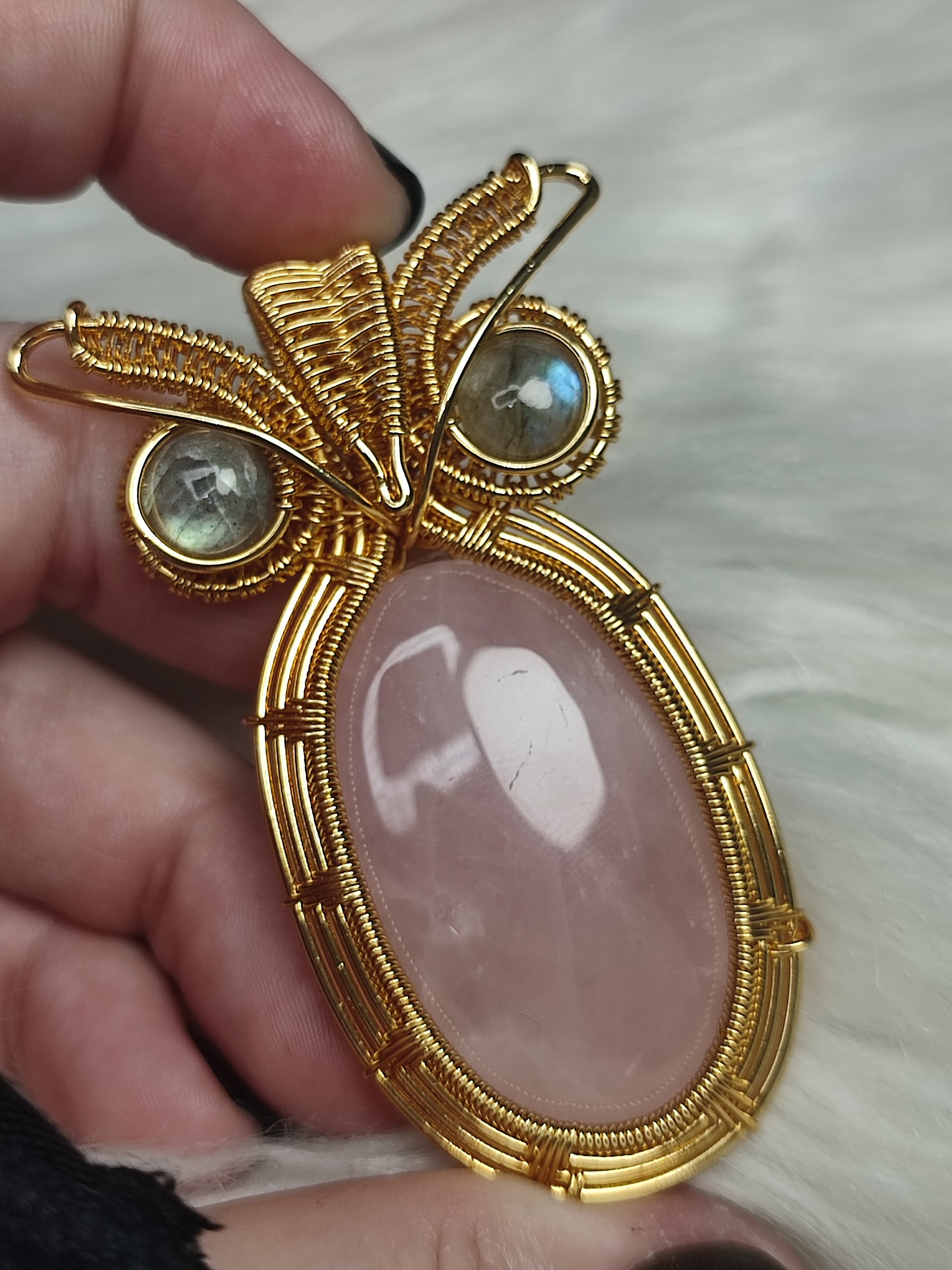 Colgante aluminio dorado con cuarzo rosa y labradorita