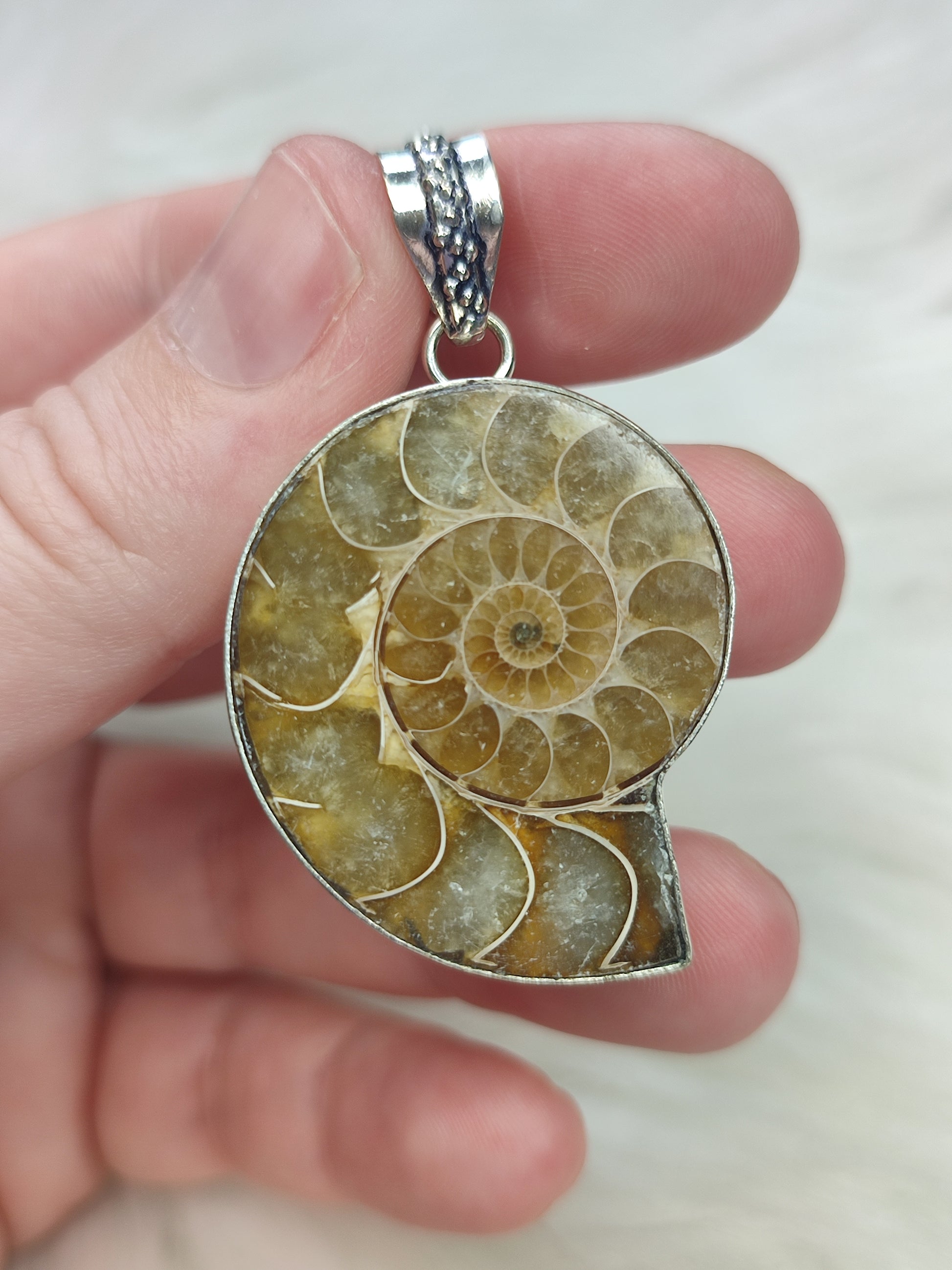 Colgante baño de plata con fósil amonite fosil - Nautilus 178
