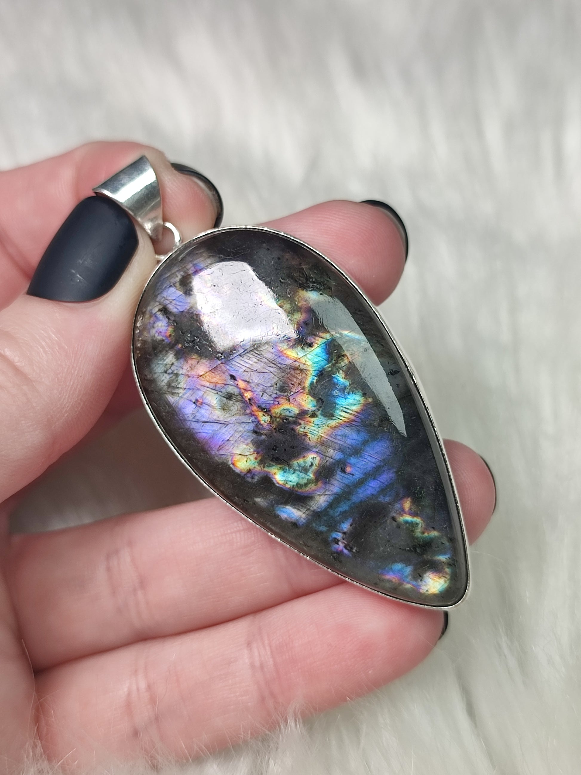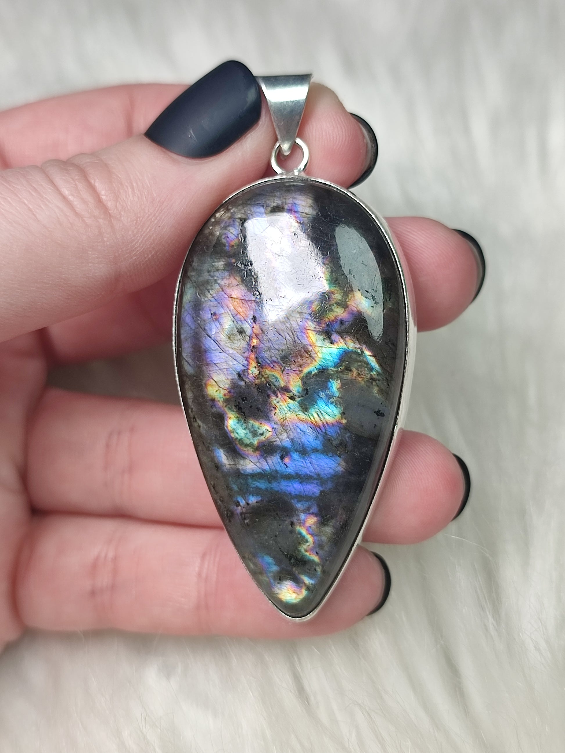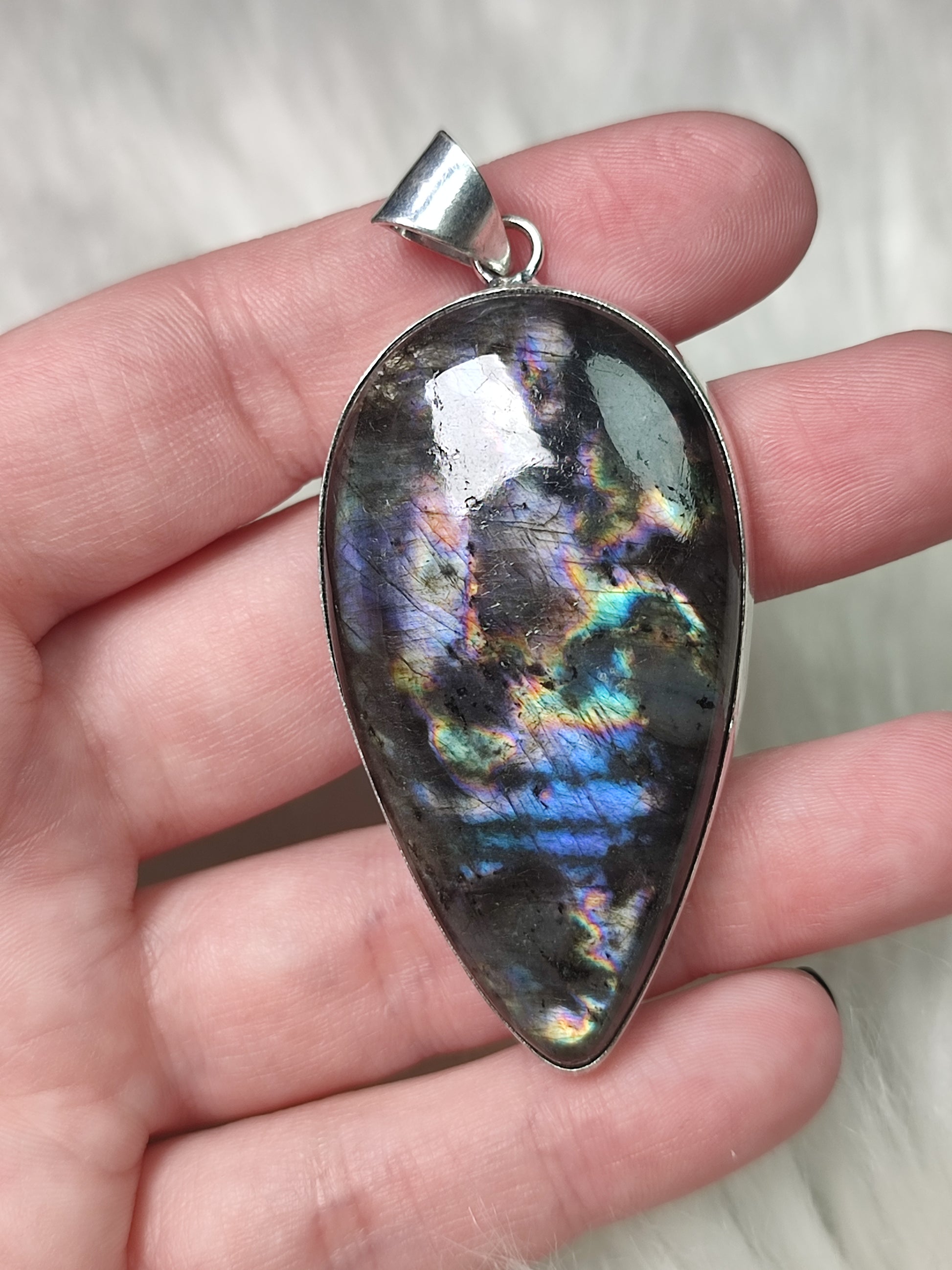 Colgante baño de plata labradorita espectrololita - N° 68