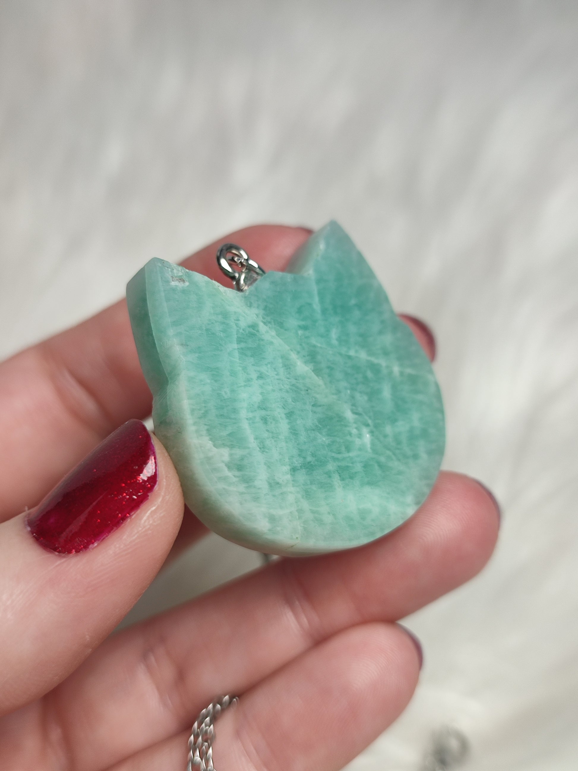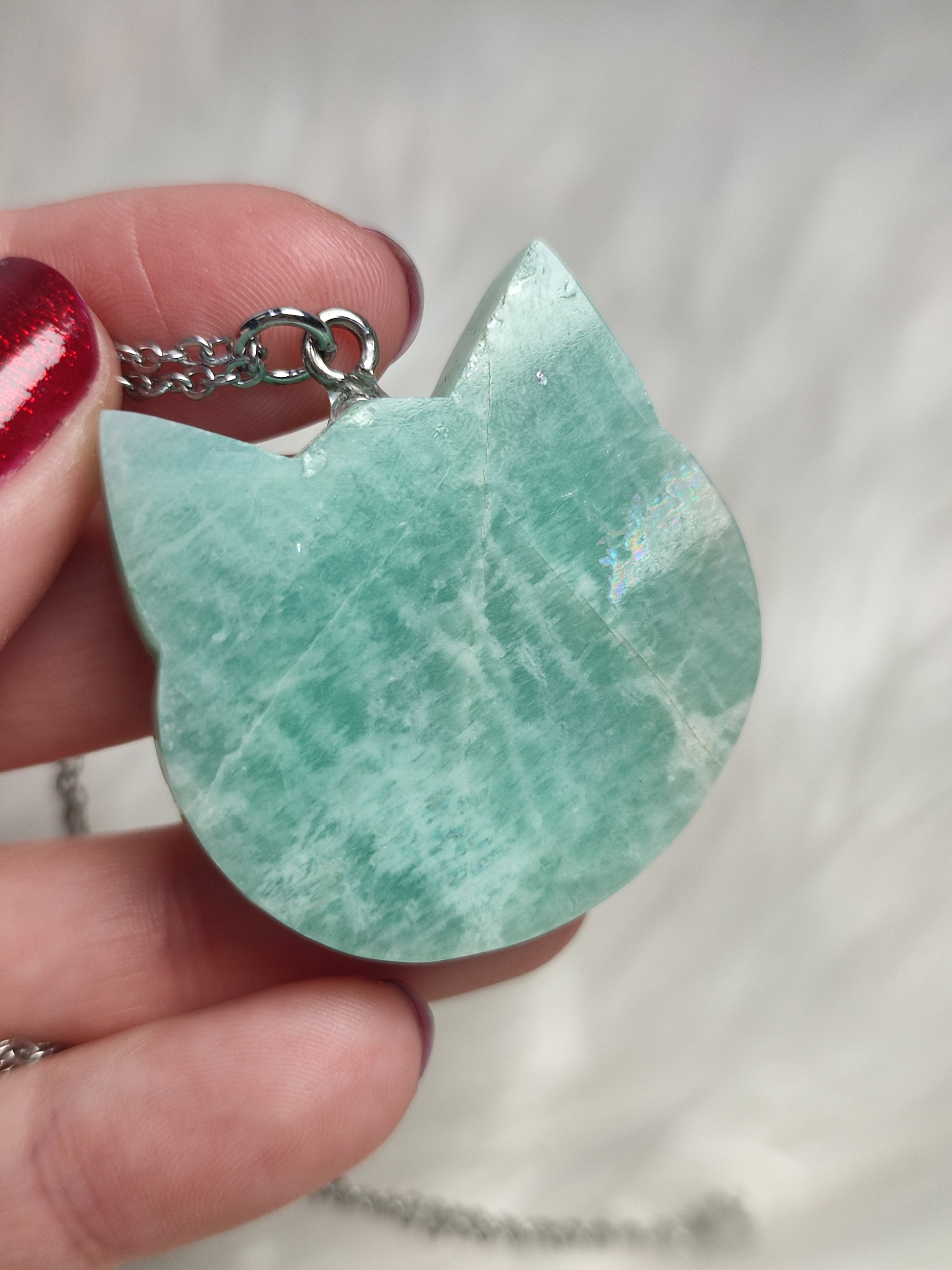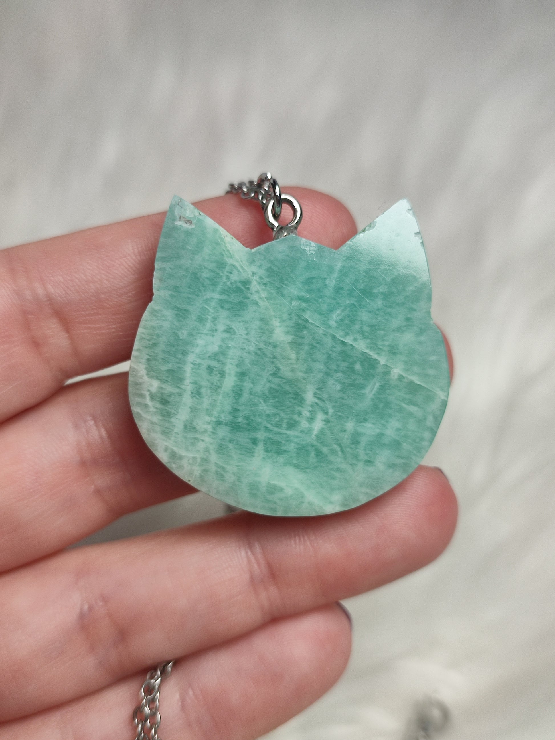 Colgante gato en acero con amazonita n°7