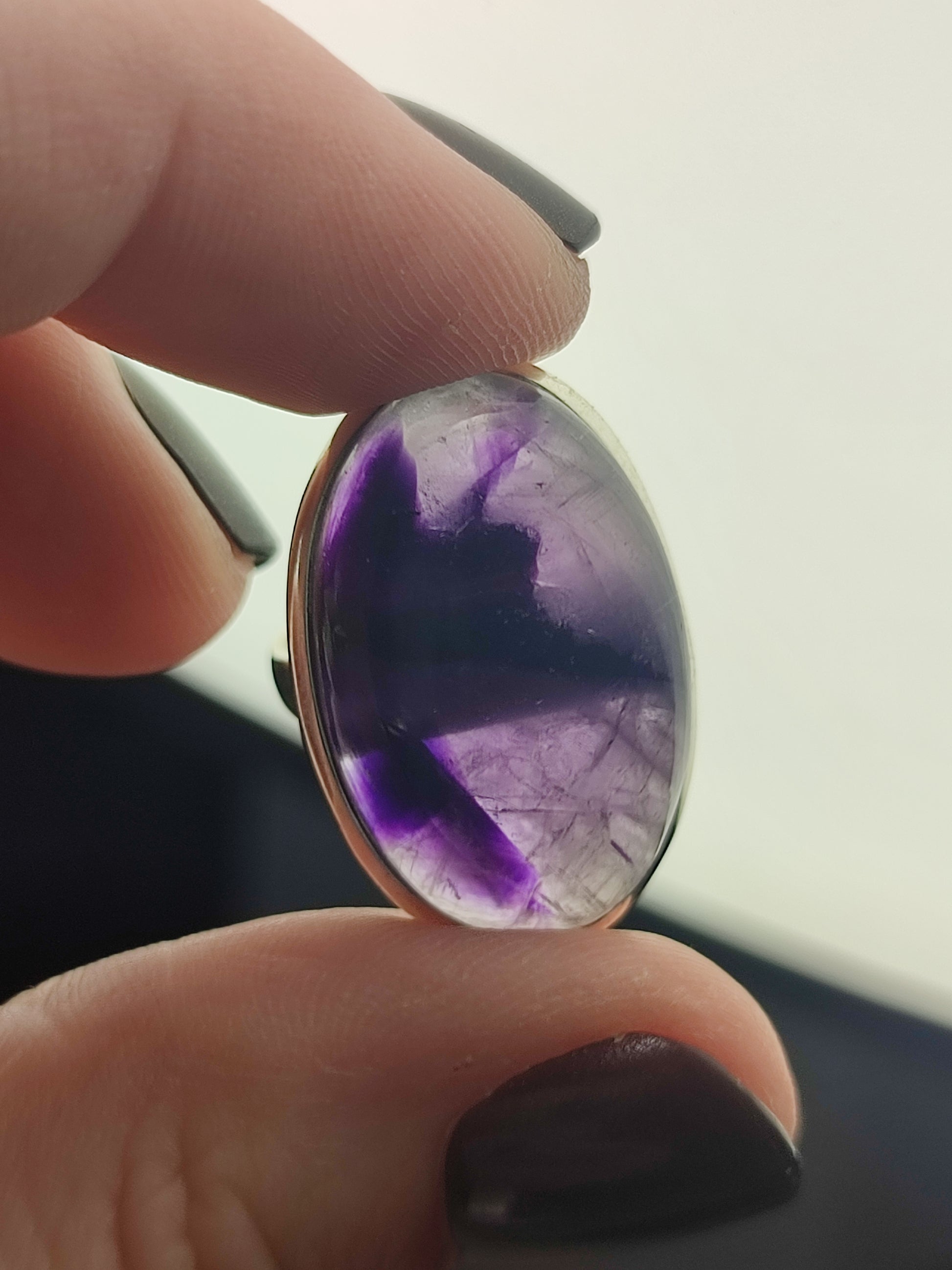 Anillo plata 925 con amatista trapiche - ajustable n° 31