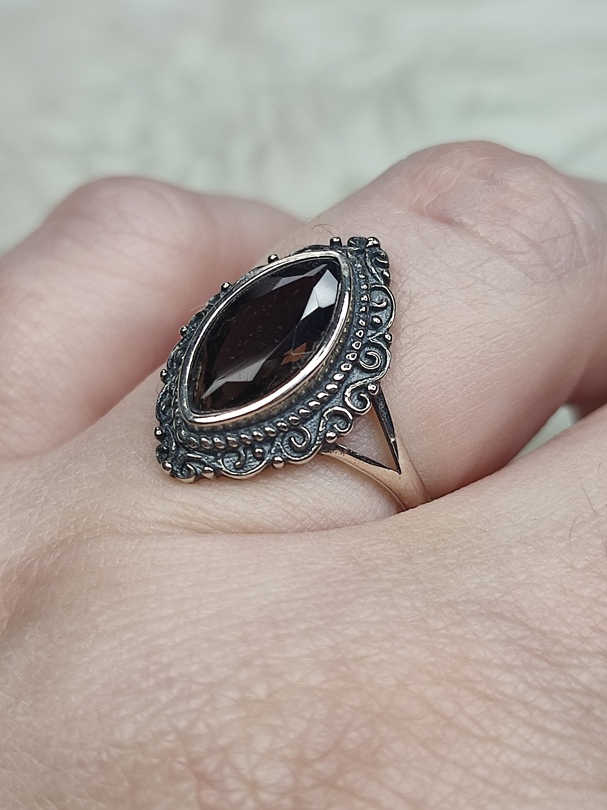 Anillo plata 925 con cuarzo ahumado facetado - ajustable n° 7