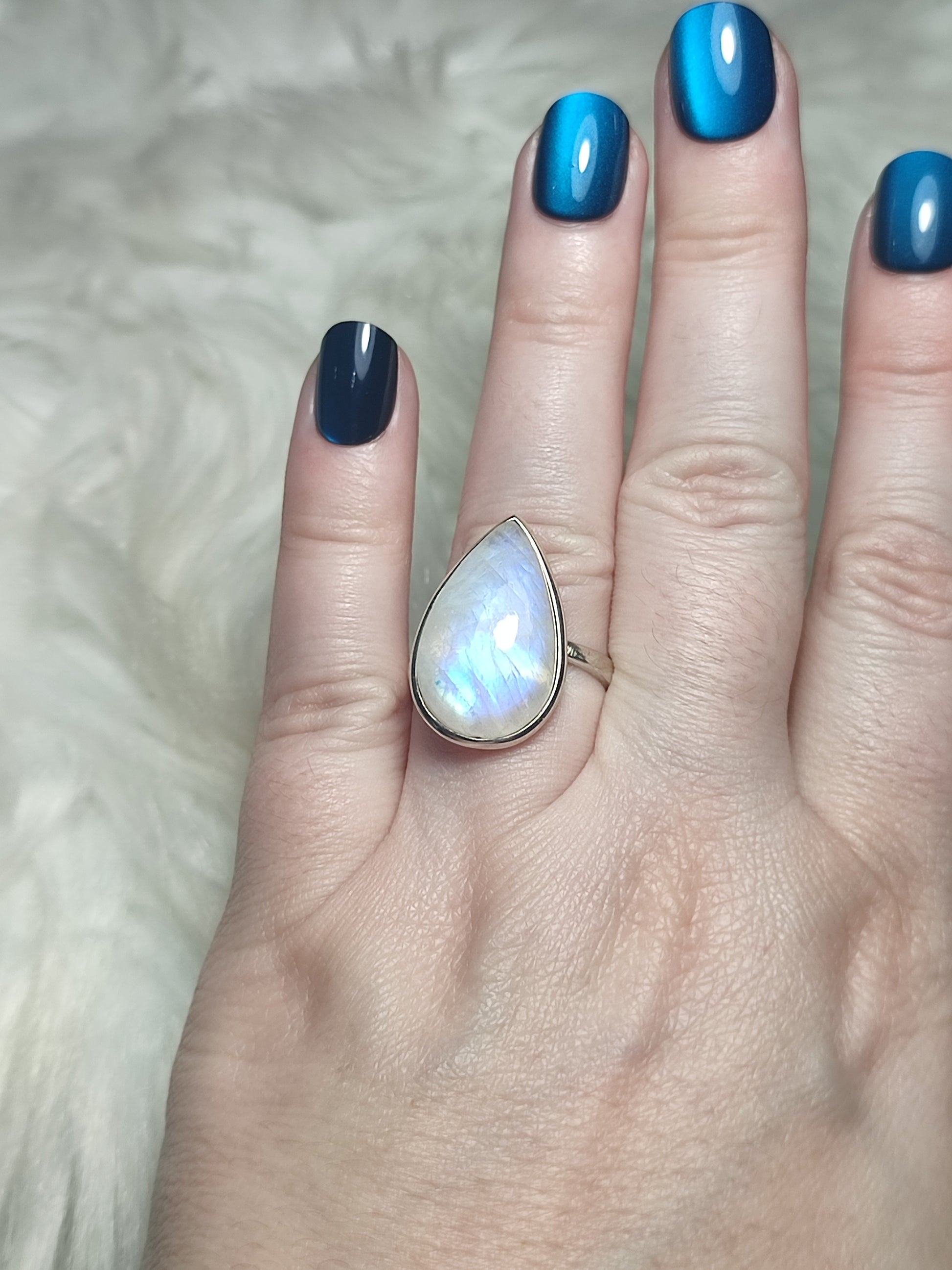 Anillo plata 925 con piedra luna extra - ajustable n° 16