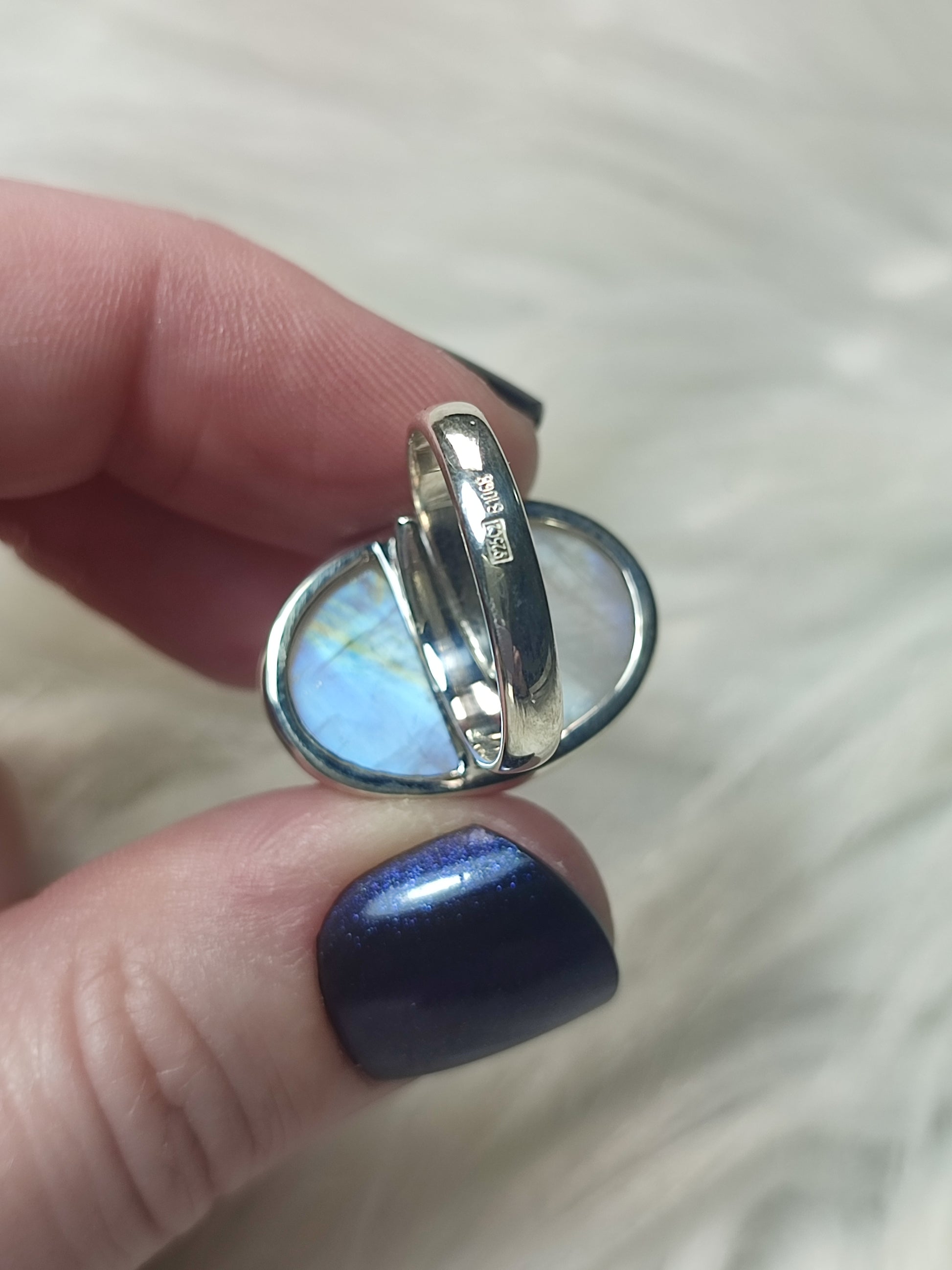 Anillo plata 925 con Piedra Luna flash - ajustable n° 15