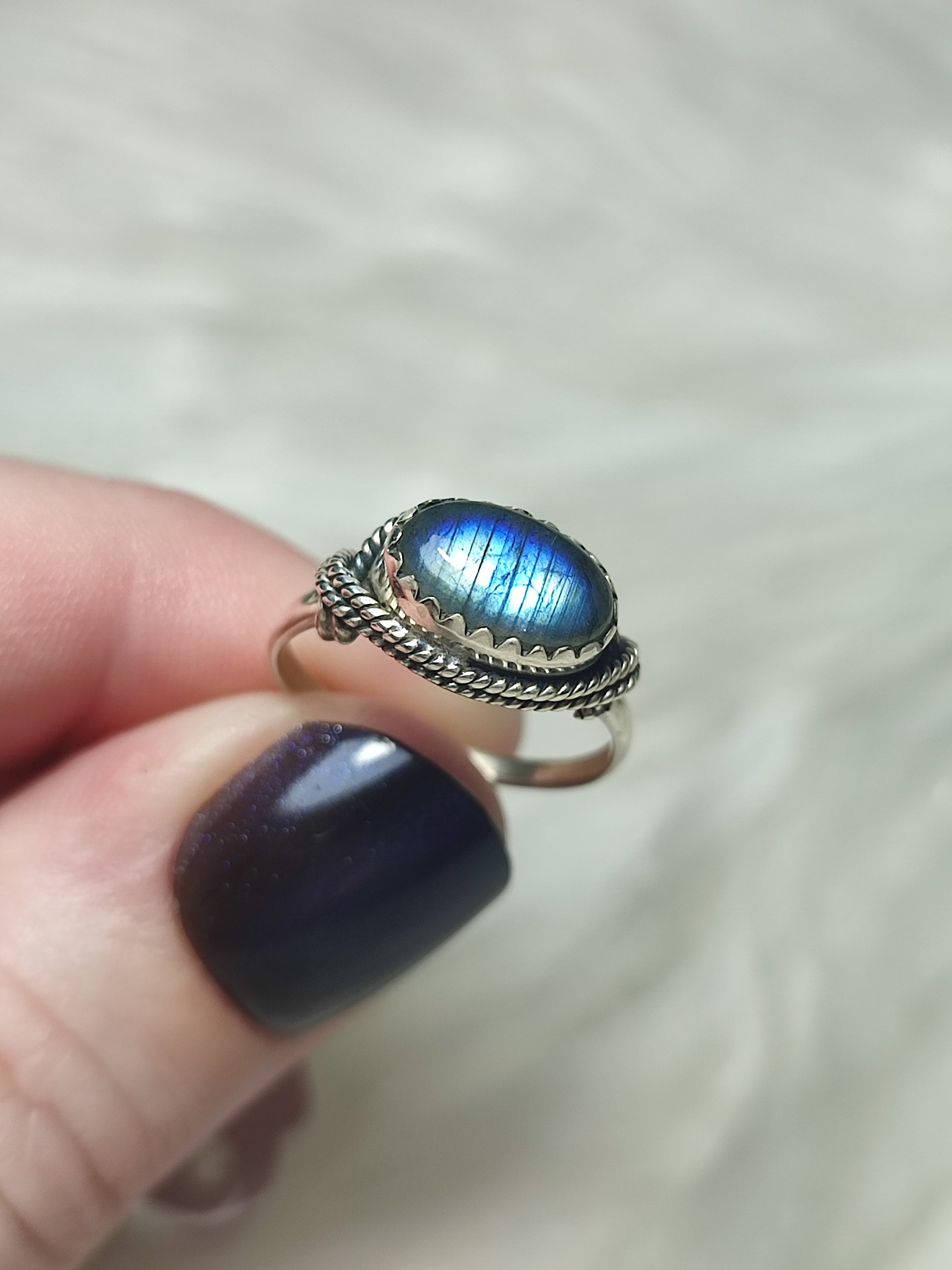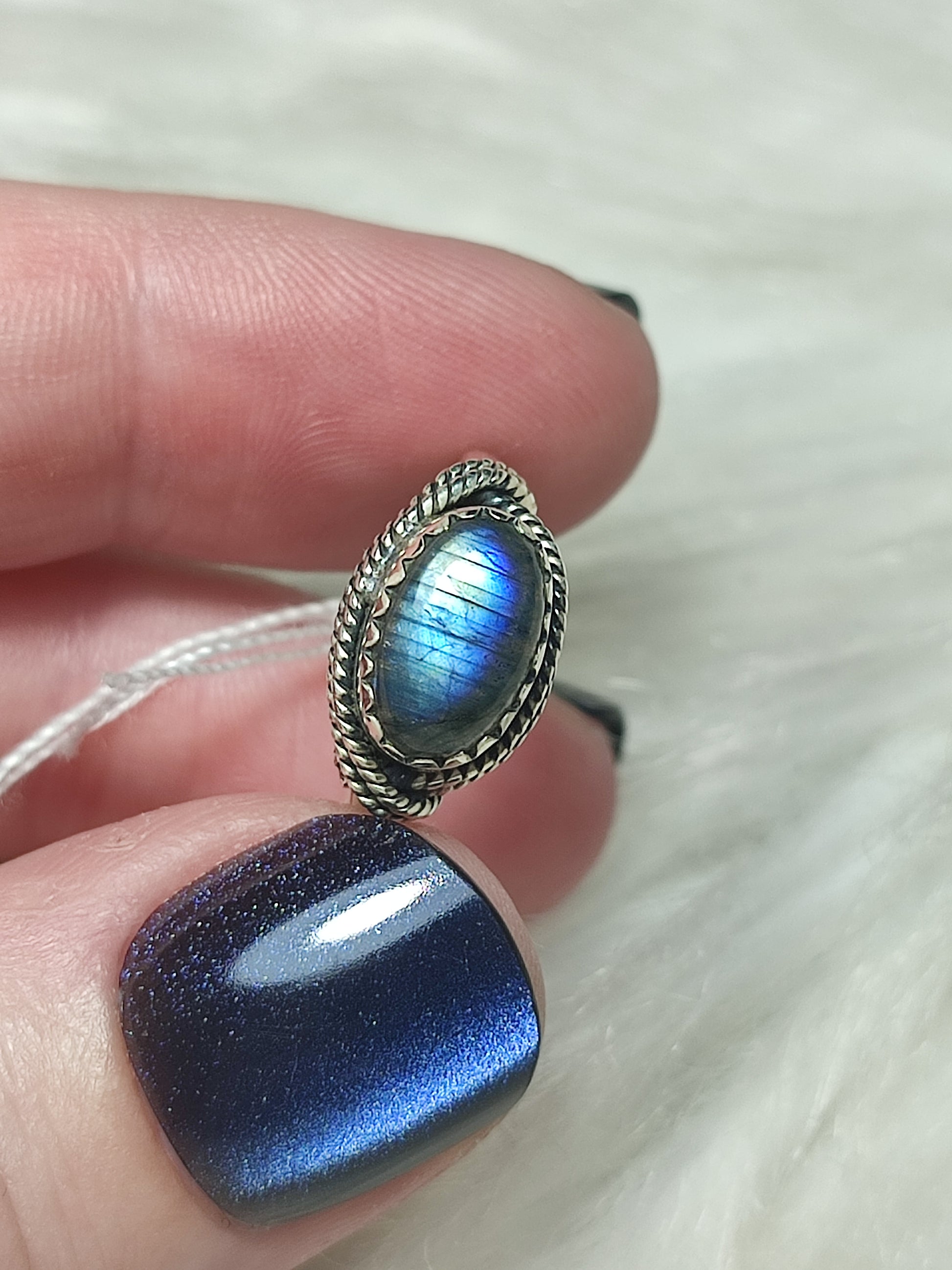 Anillo plata de ley 925 con labradorita de 17 mm diámetro - n°33
