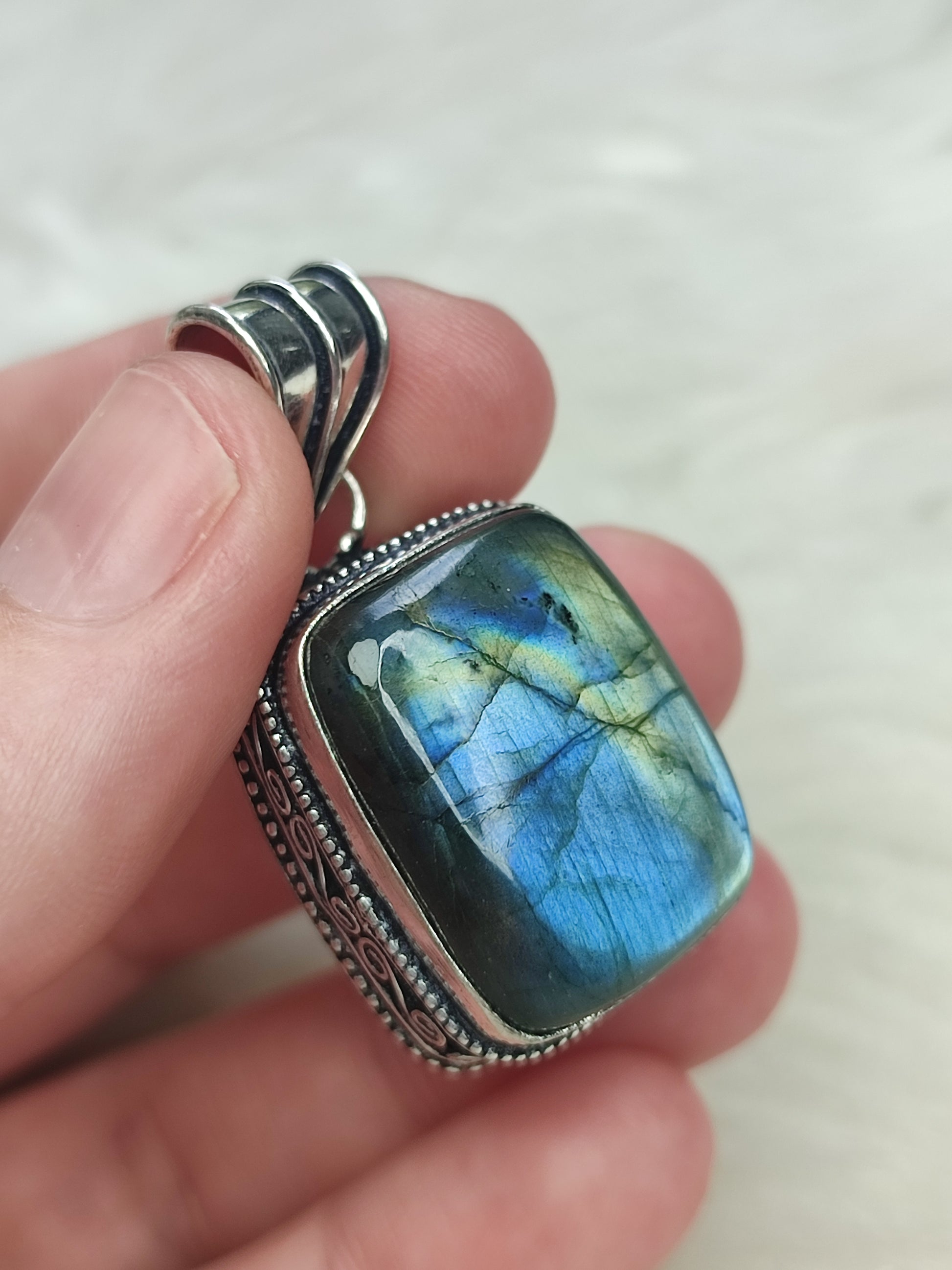 Colgante baño de plata con labradorita flash - N° 147