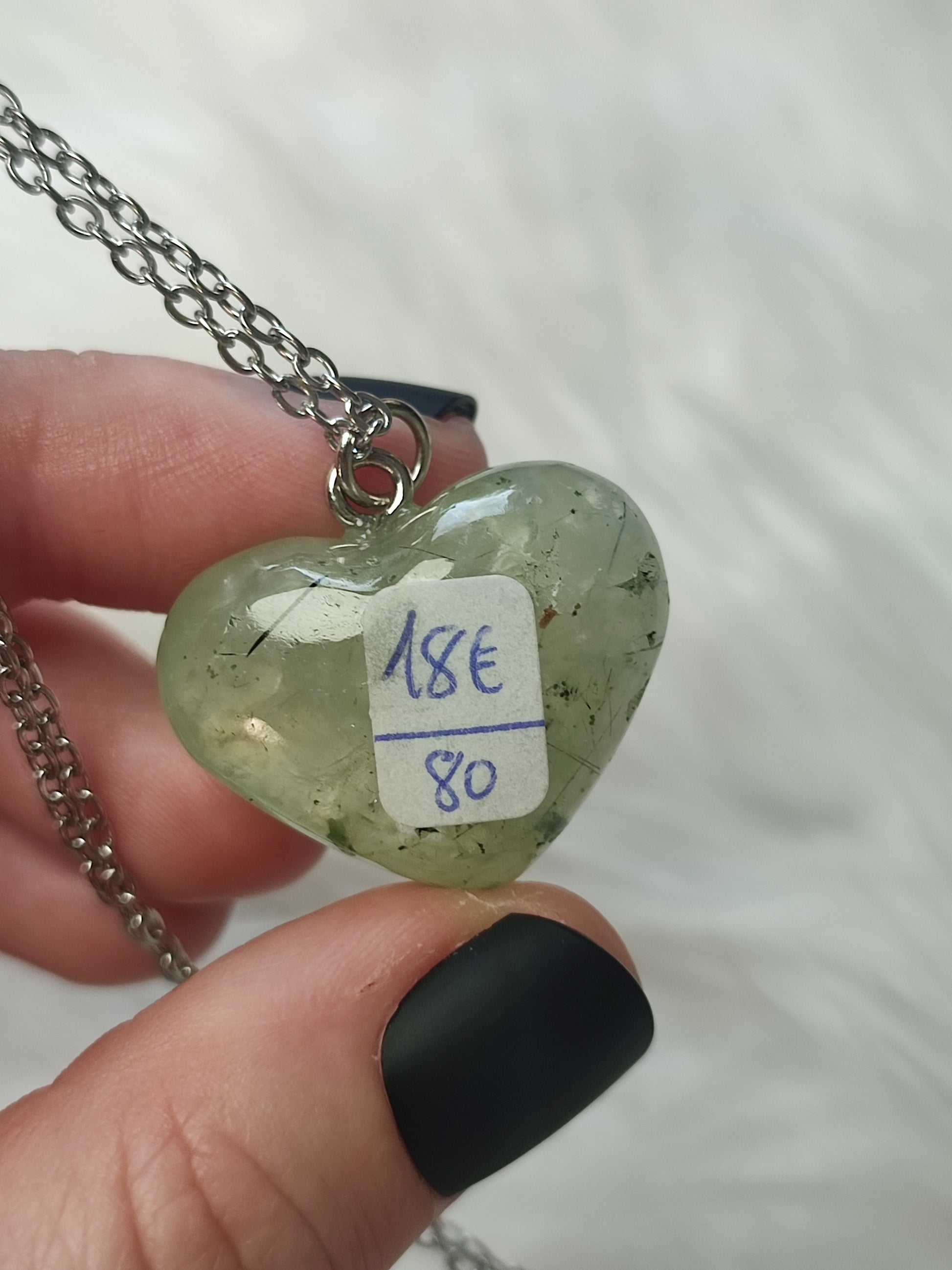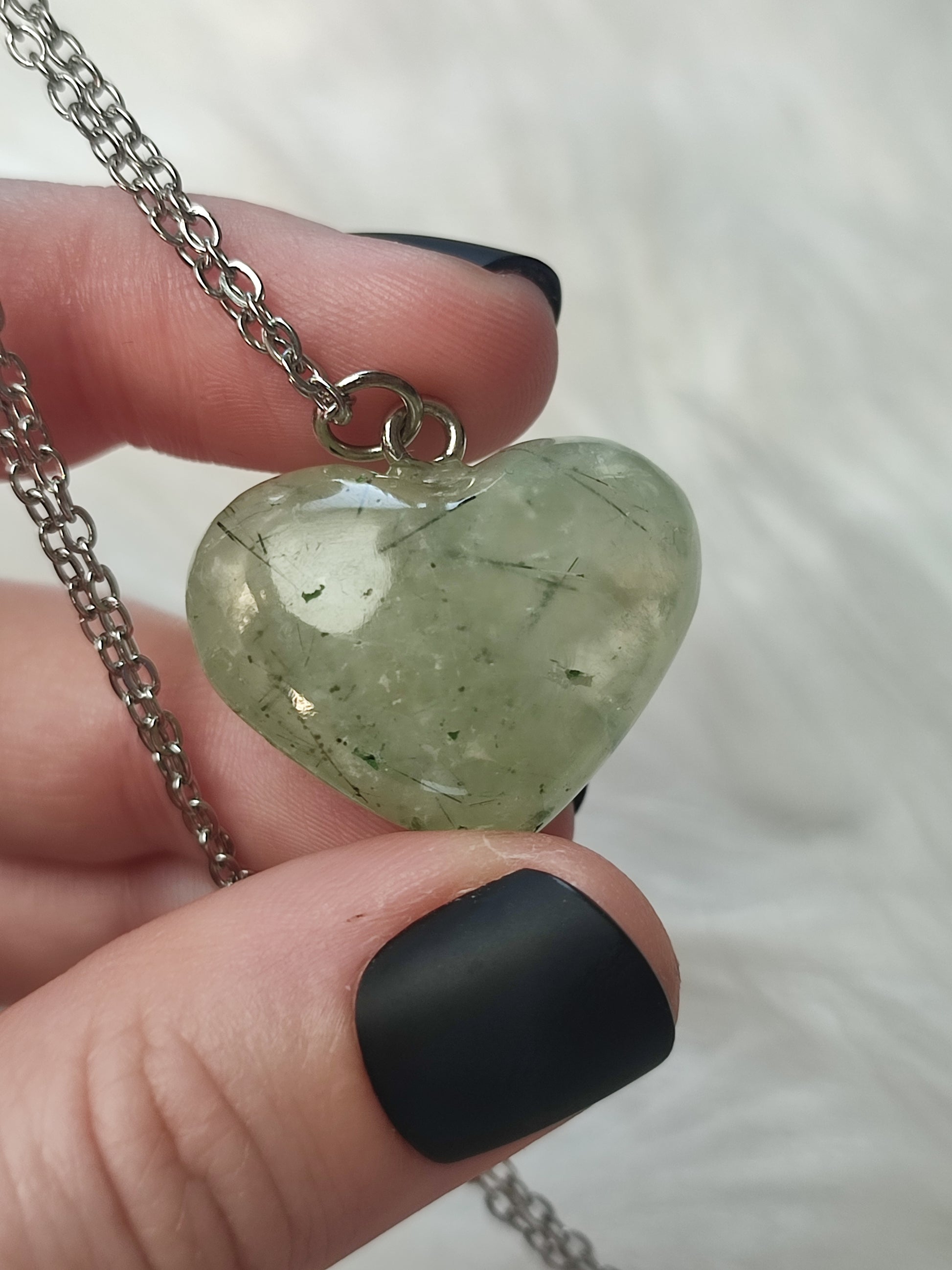 Collar en acero con corazón prehnita - N°80
