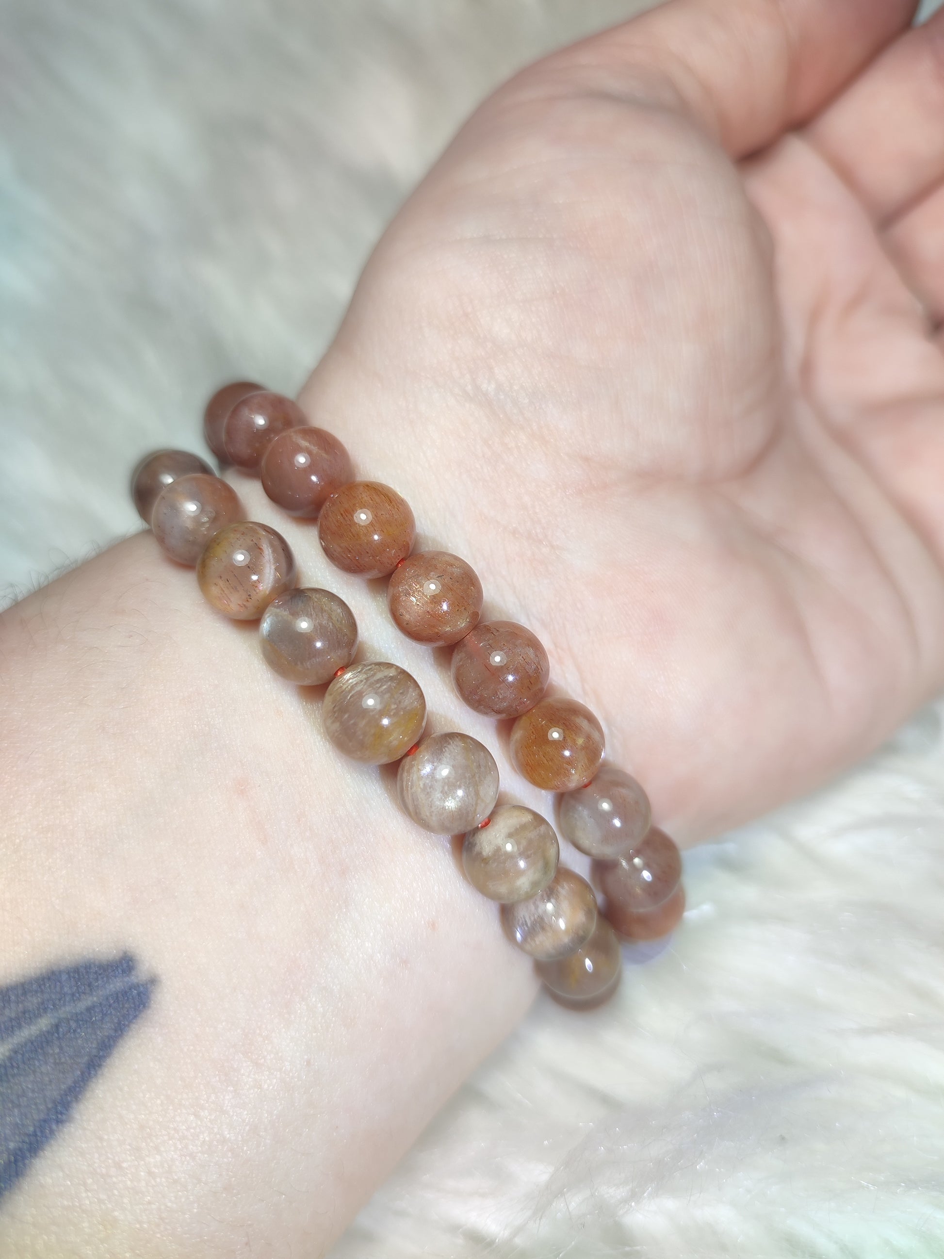 Pulsera elástica bolas 8/9 mm - Piedra Luna melocotón Extra