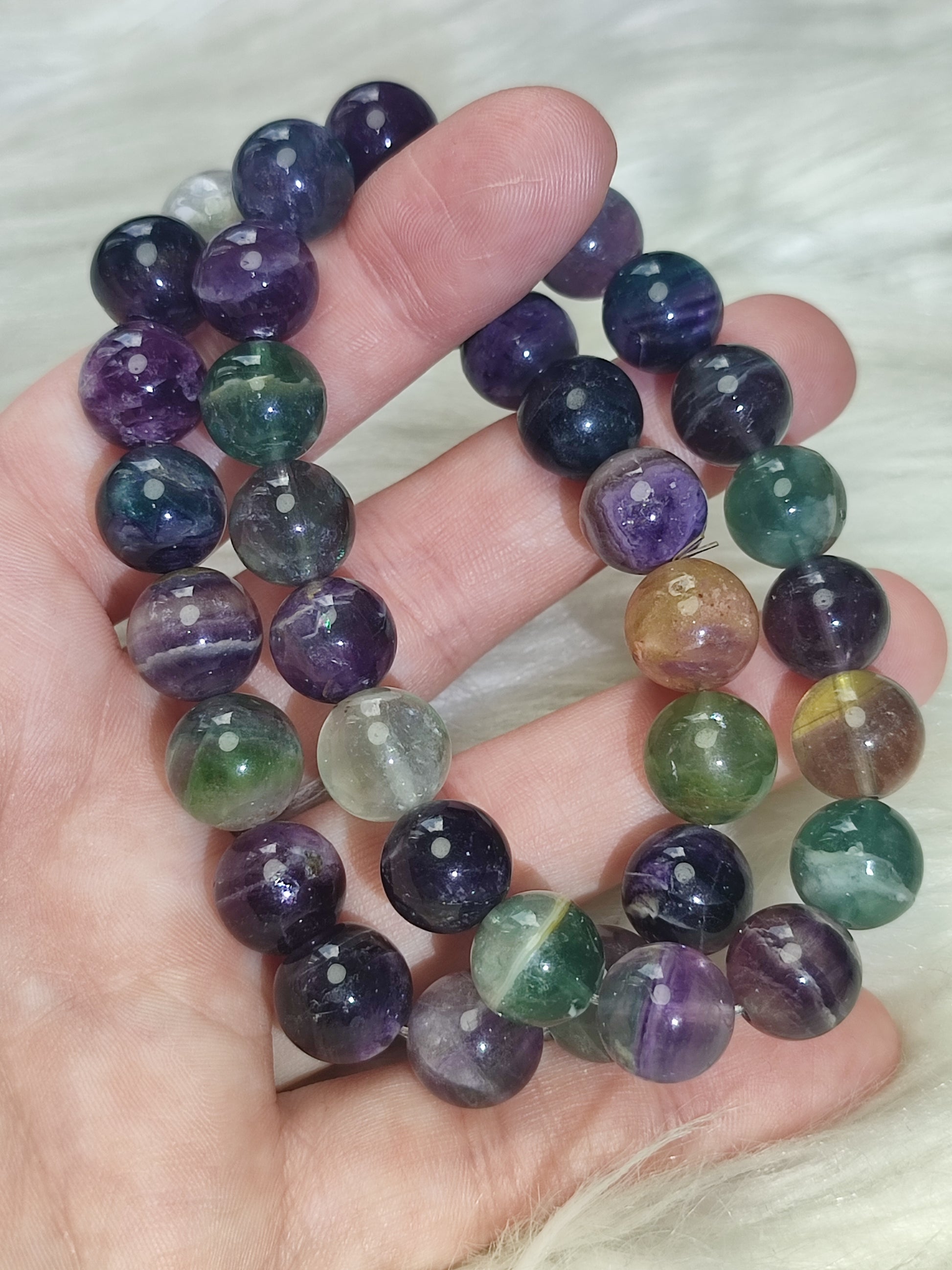 Pulsera elástica esferas de fluorita multicolor 11 mm