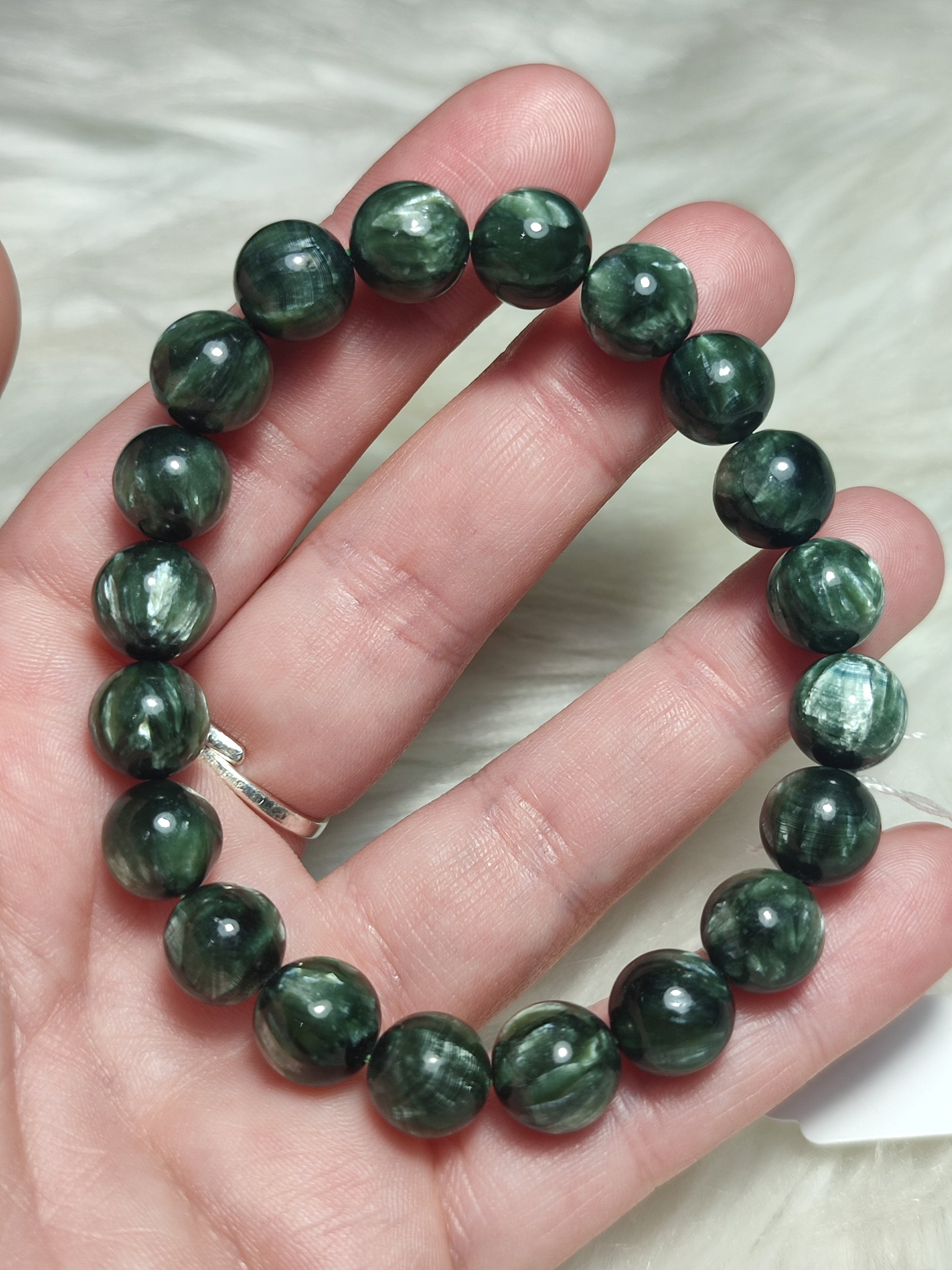 Pulsera unica esferas de serafinita extra 10 mm