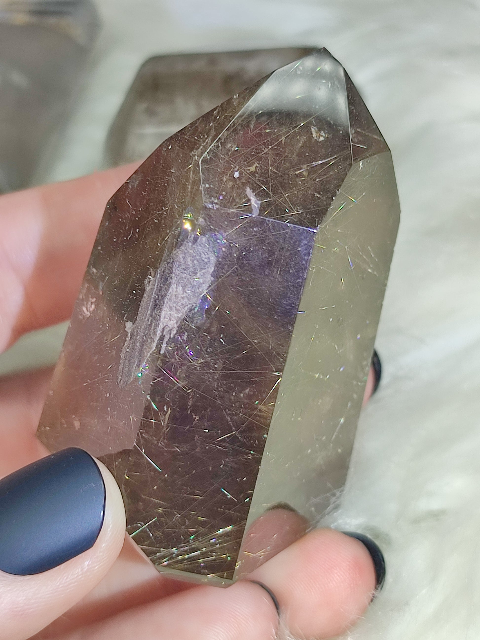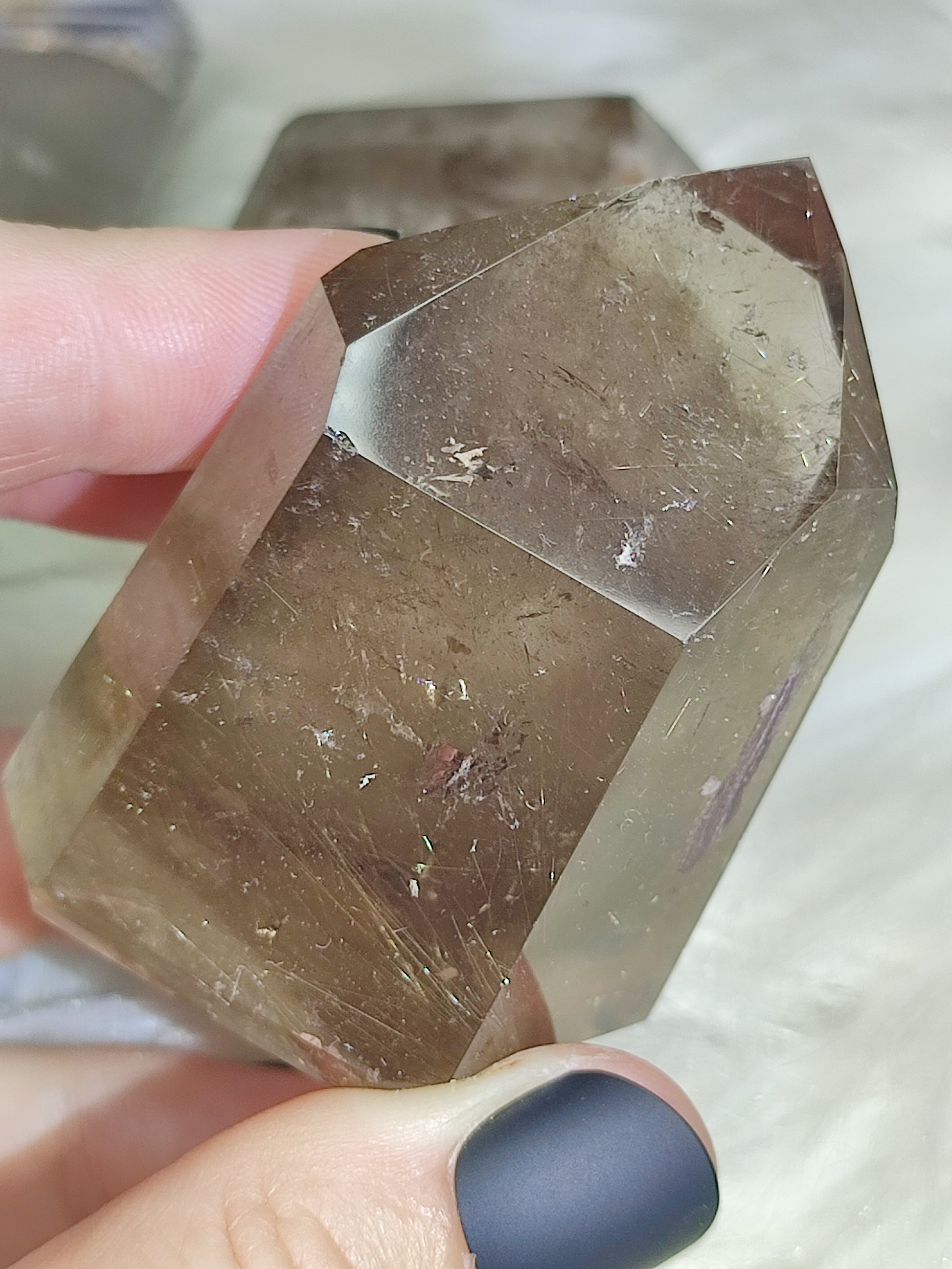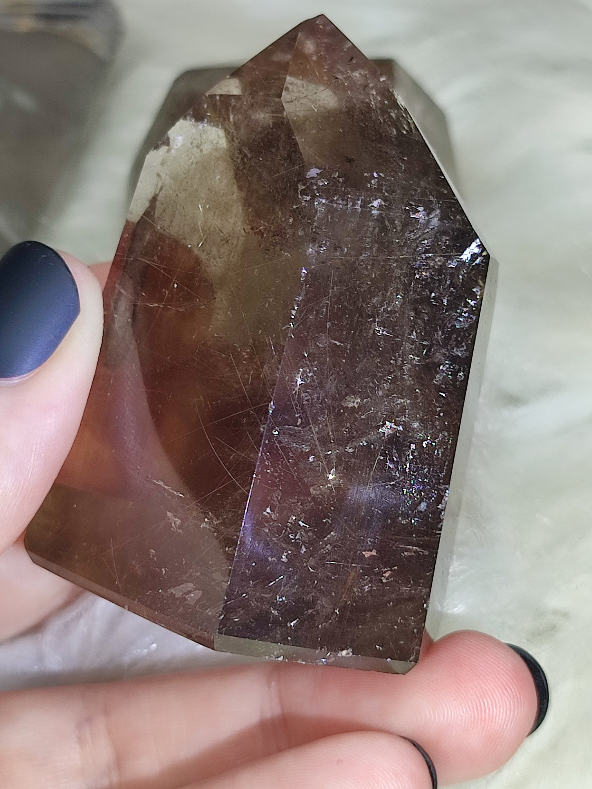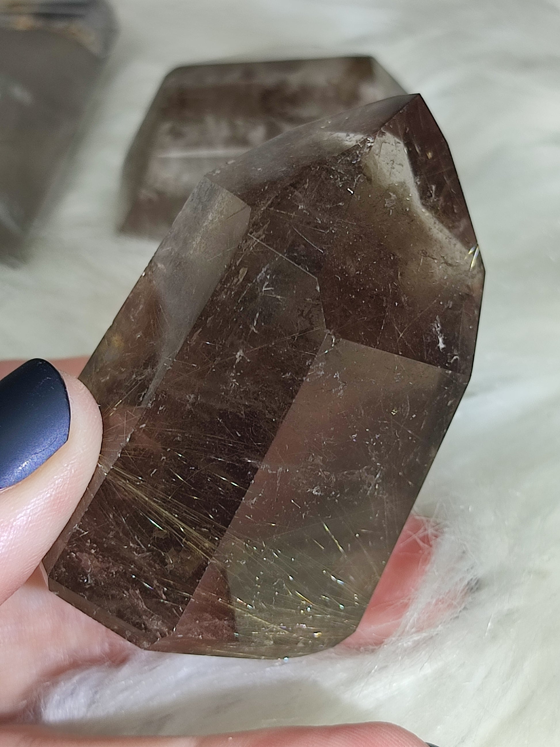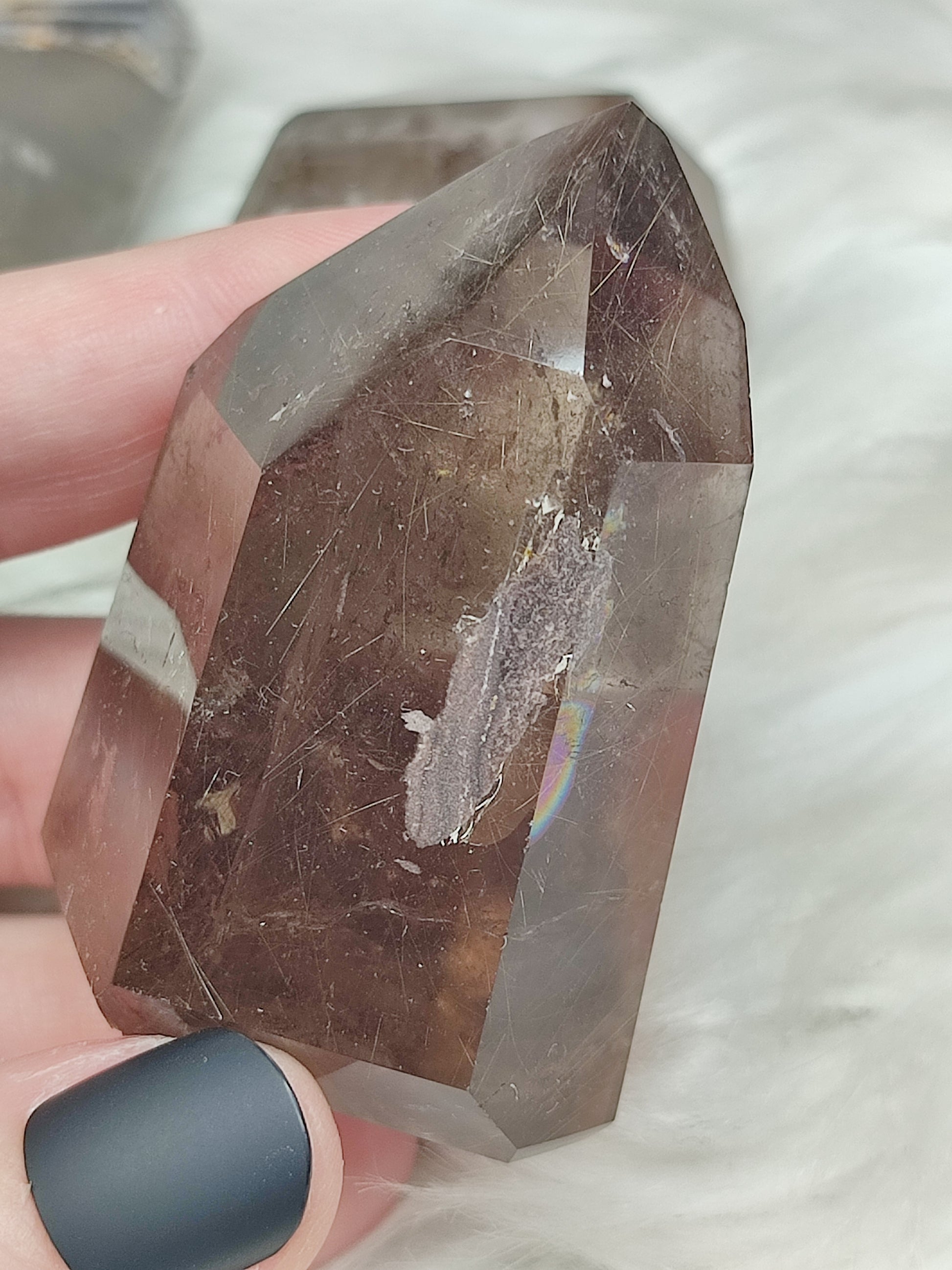 Punta cuarzo ahumado con rutilo e inclusiones n°83