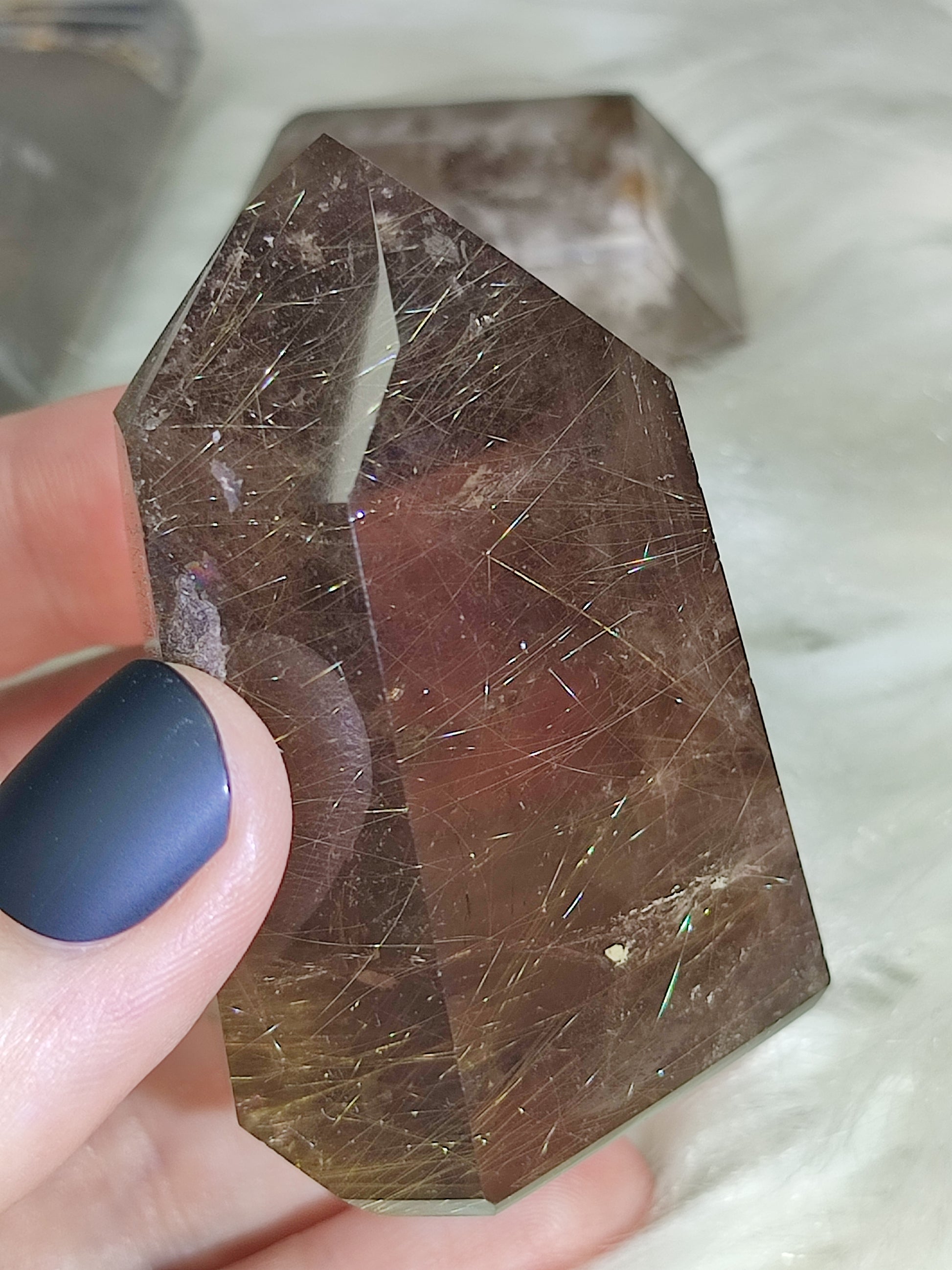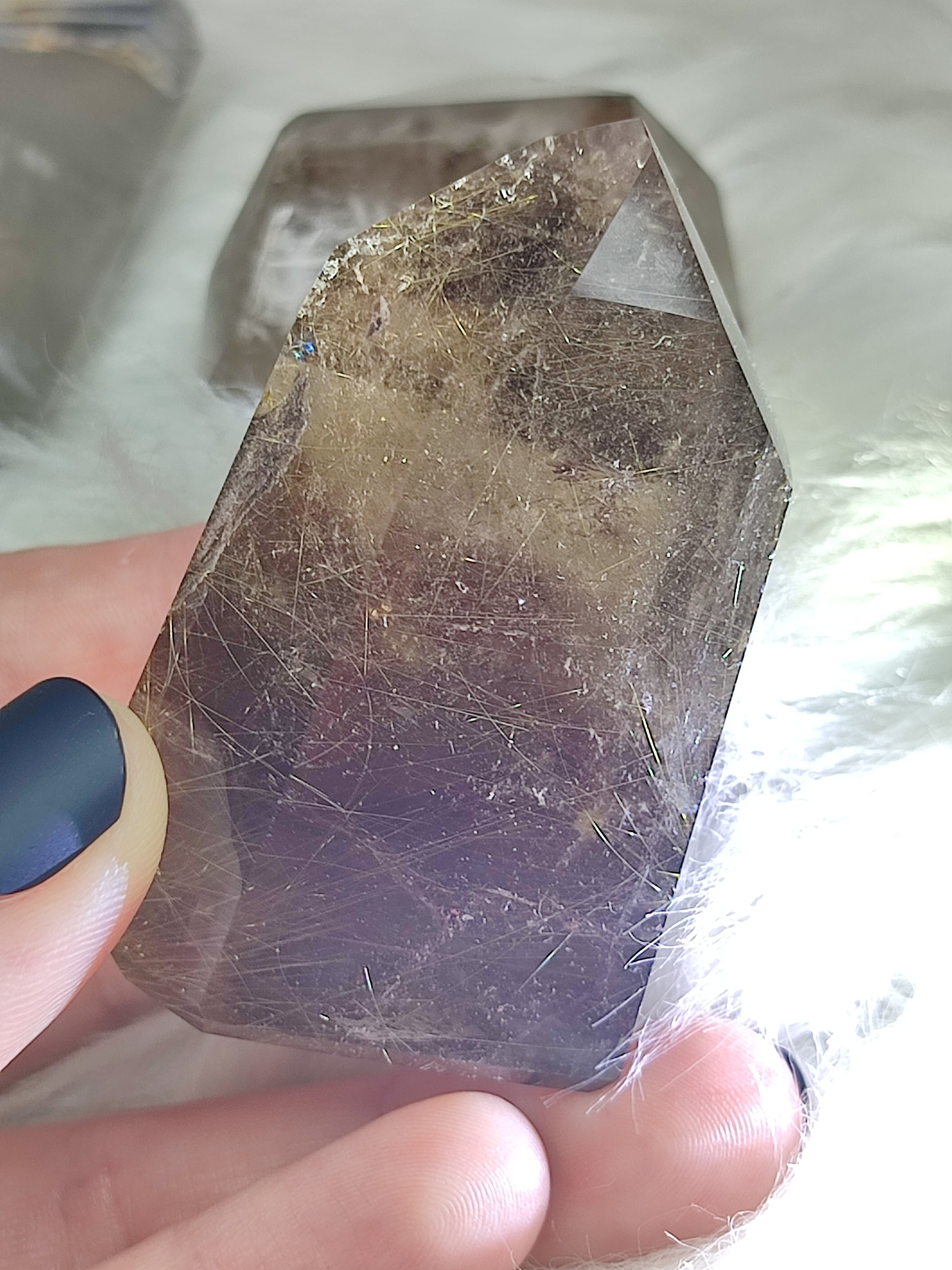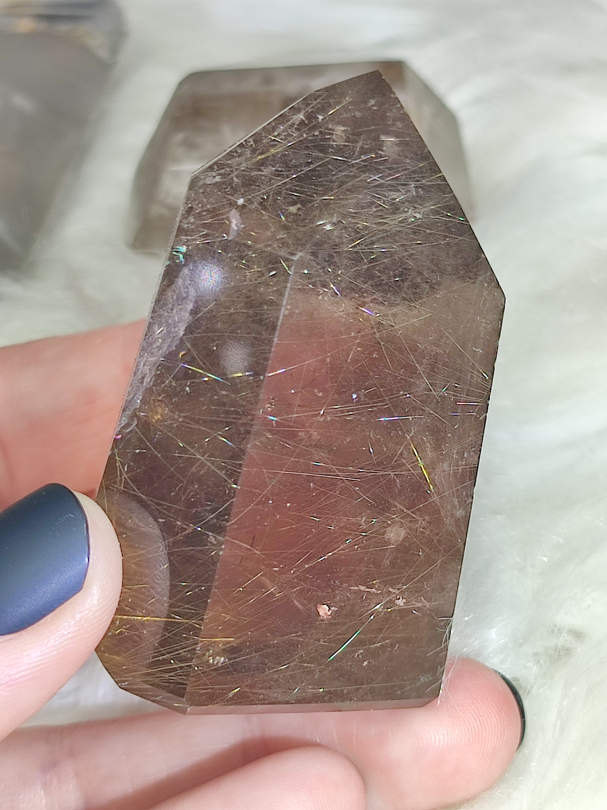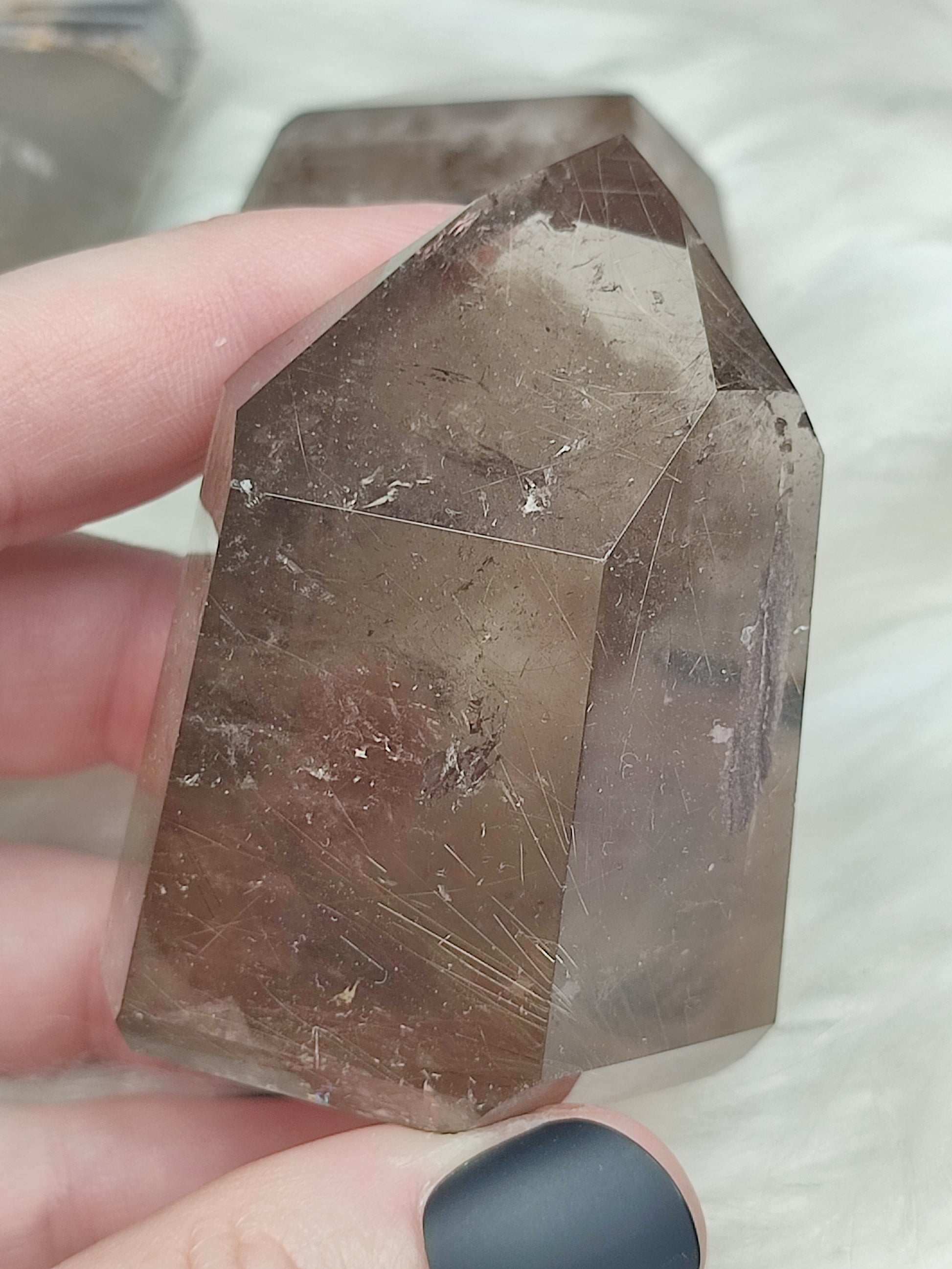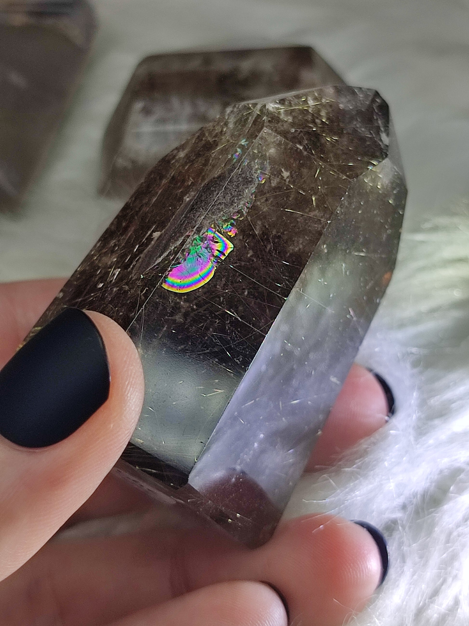Punta cuarzo ahumado con rutilo e inclusiones n°83