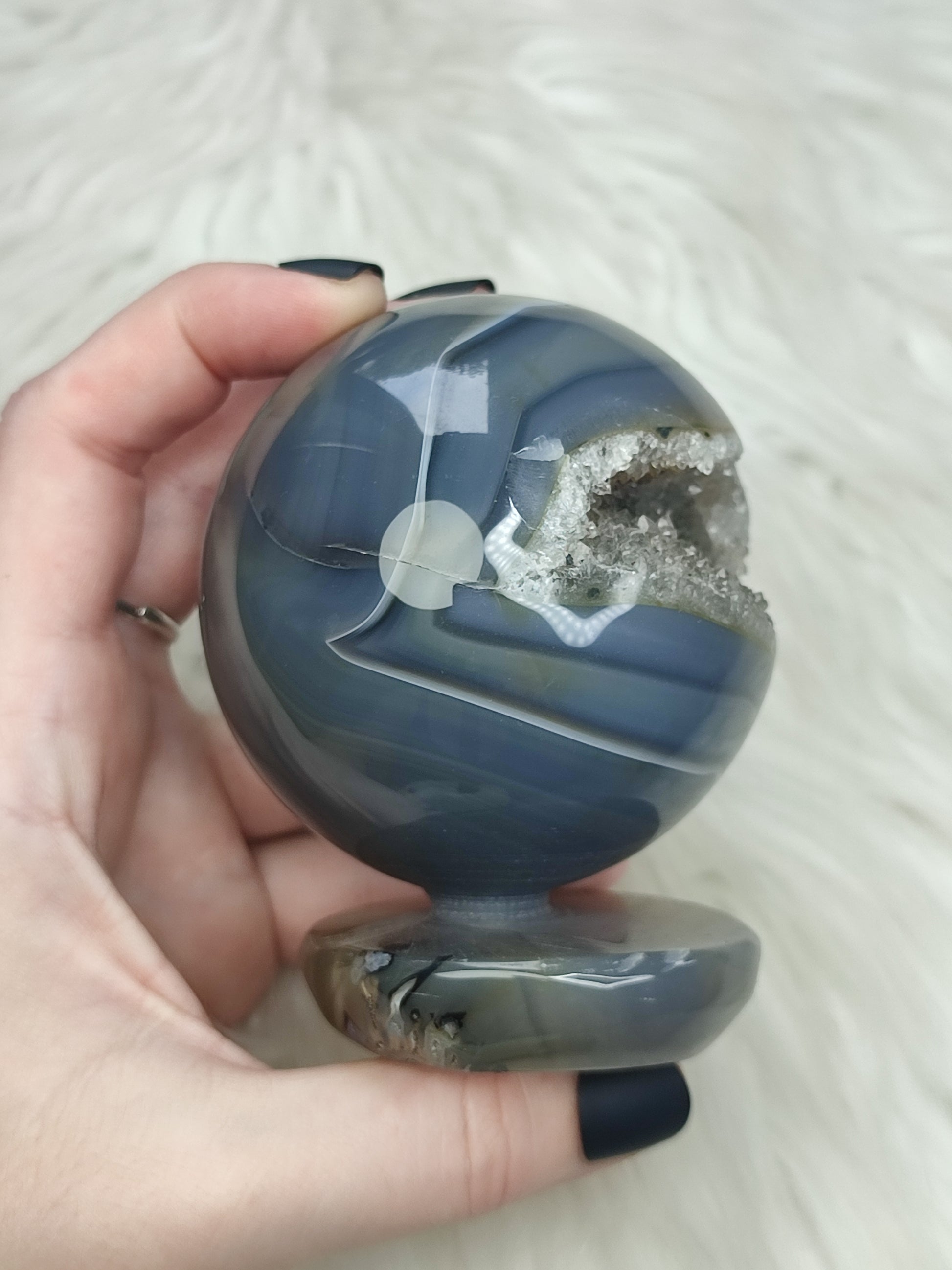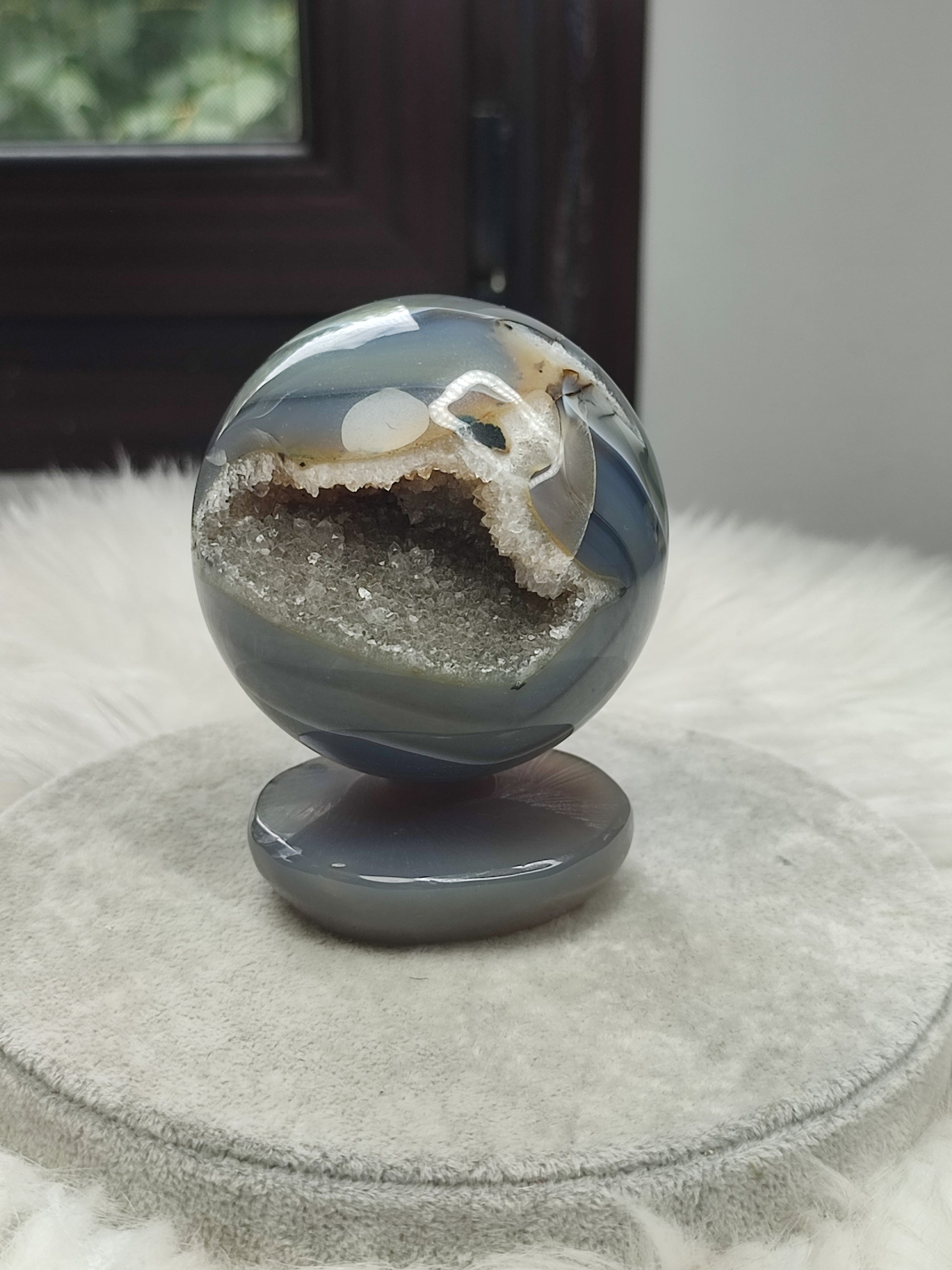 Esfera con peana de ágata cristalizada - 612 gramos