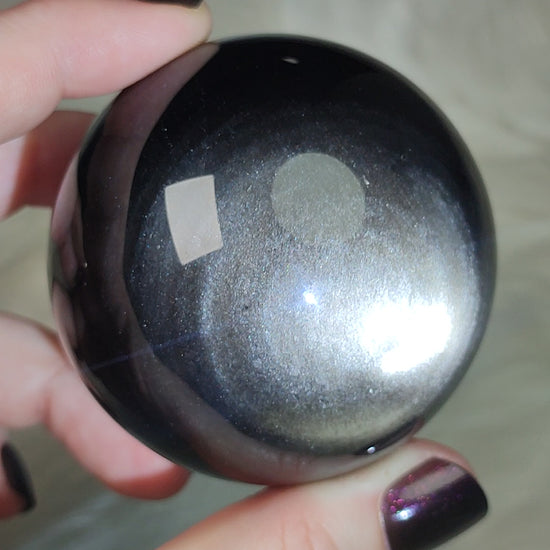 Esfera de obsidiana plateada 308 gr - video