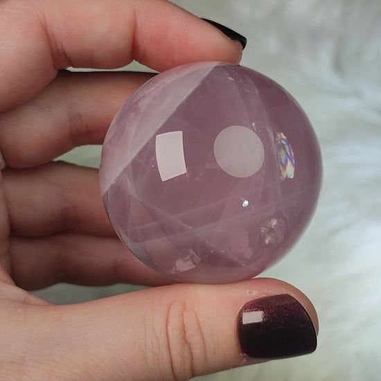Esfera rosa cuarzo rosa Madagascar con star n°142 - Video