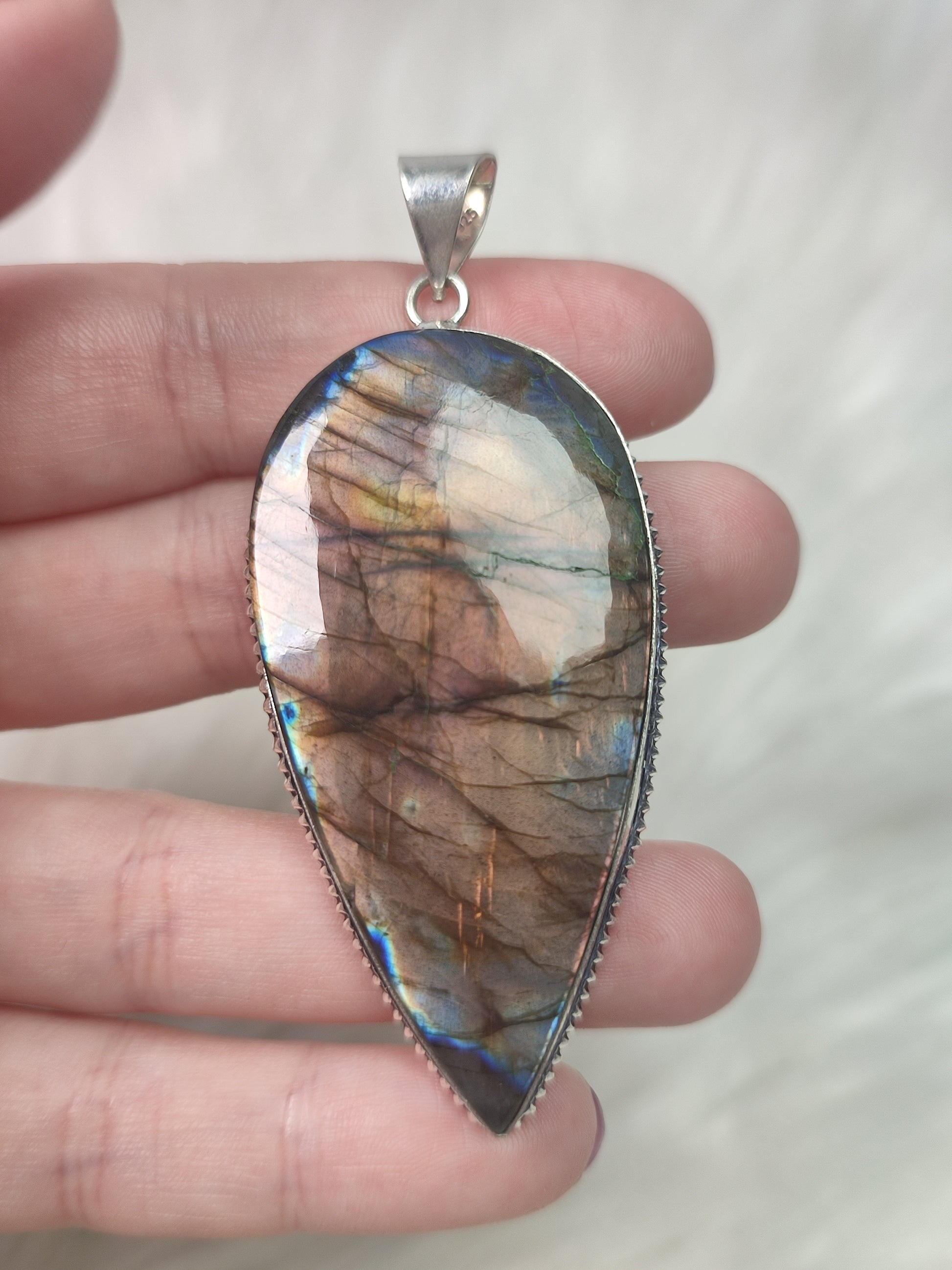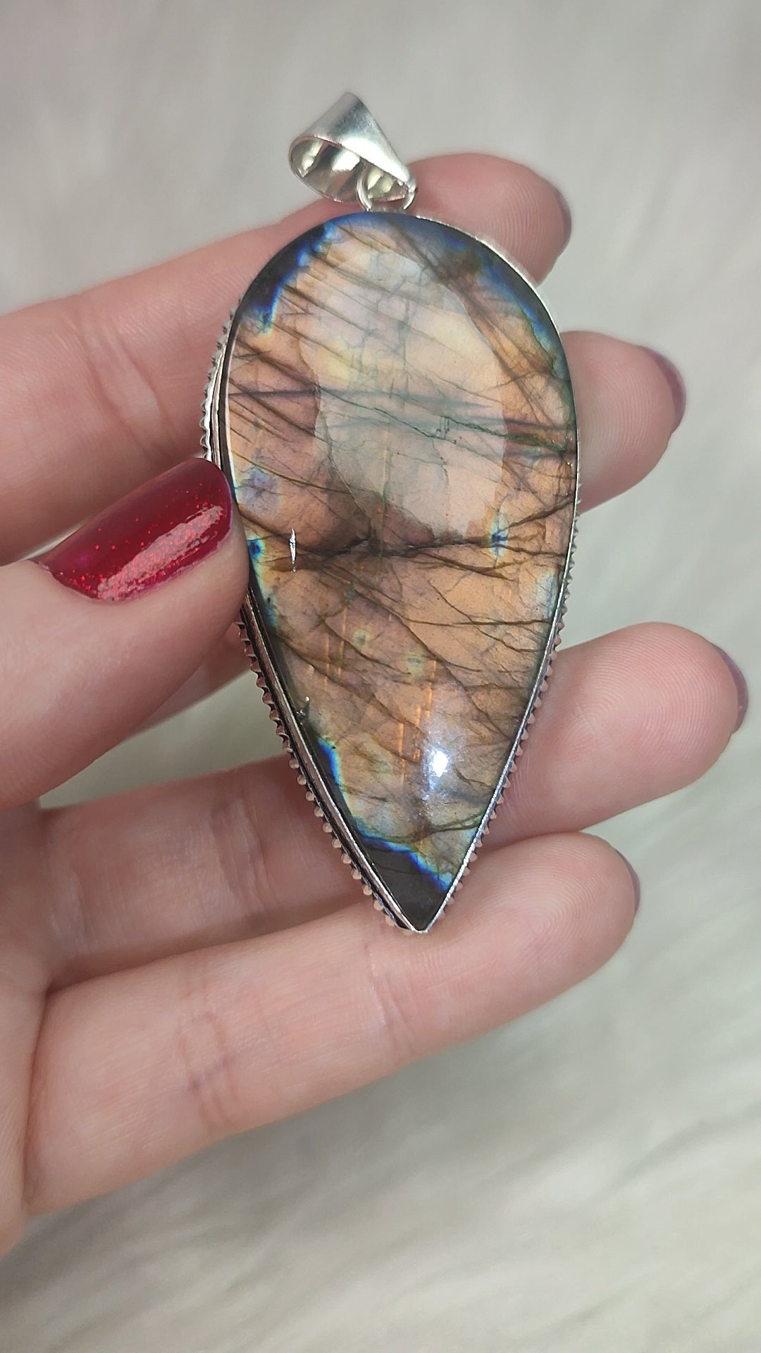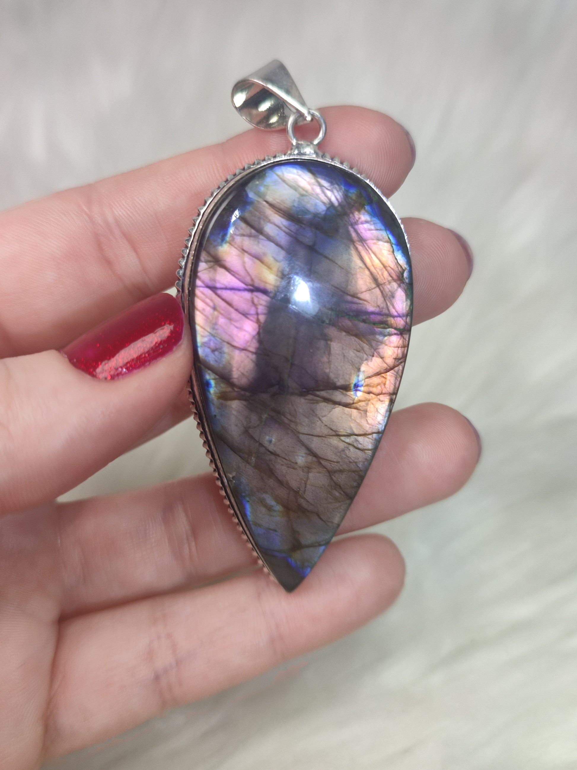 ESPECTACULAR Colgante baño plata con Labradorita multicolor 308 - VIDEO