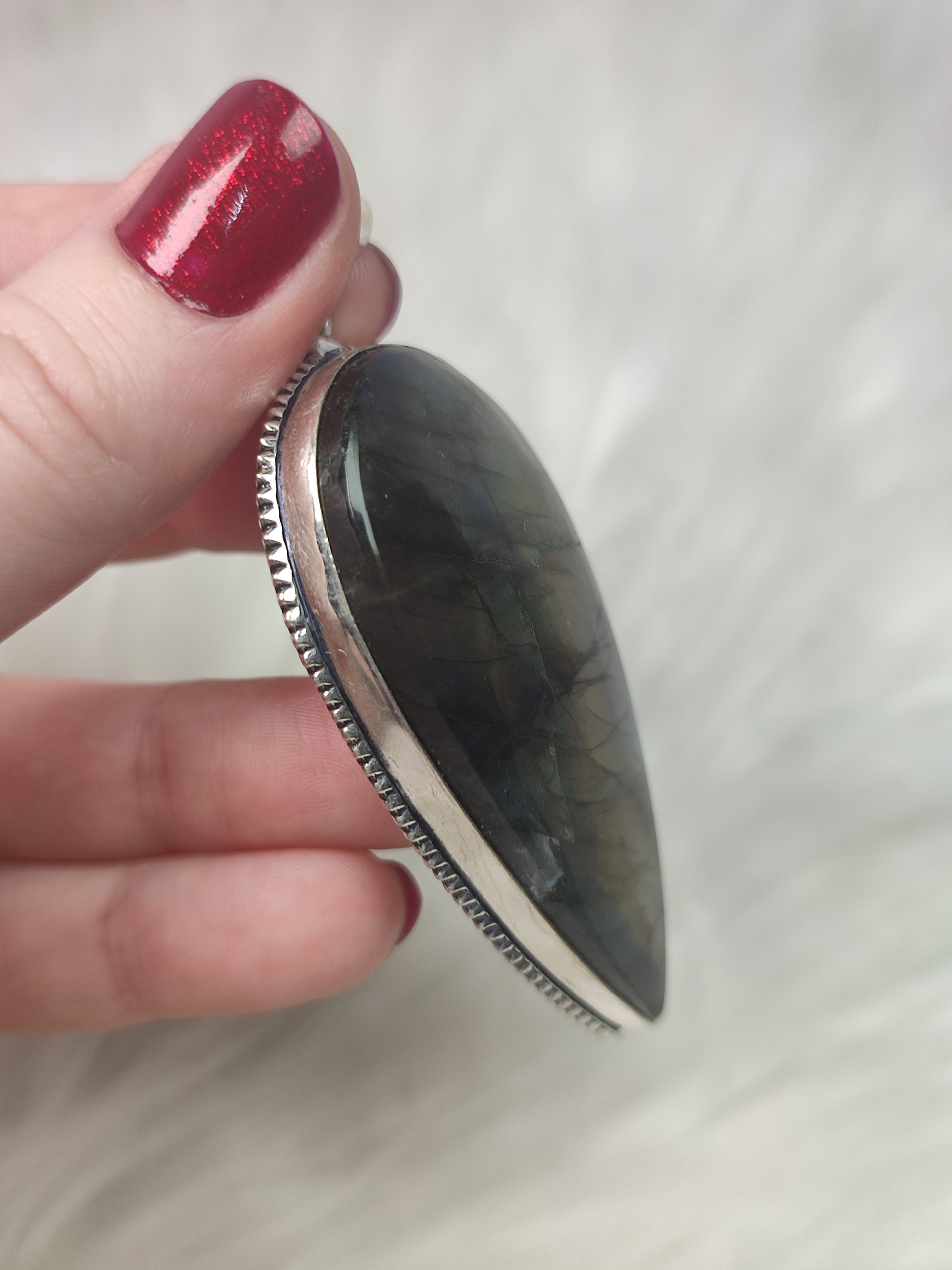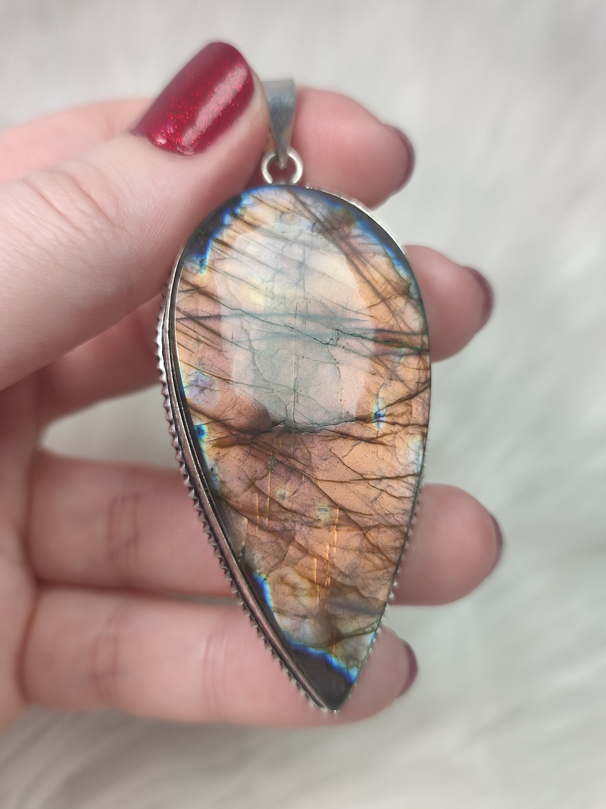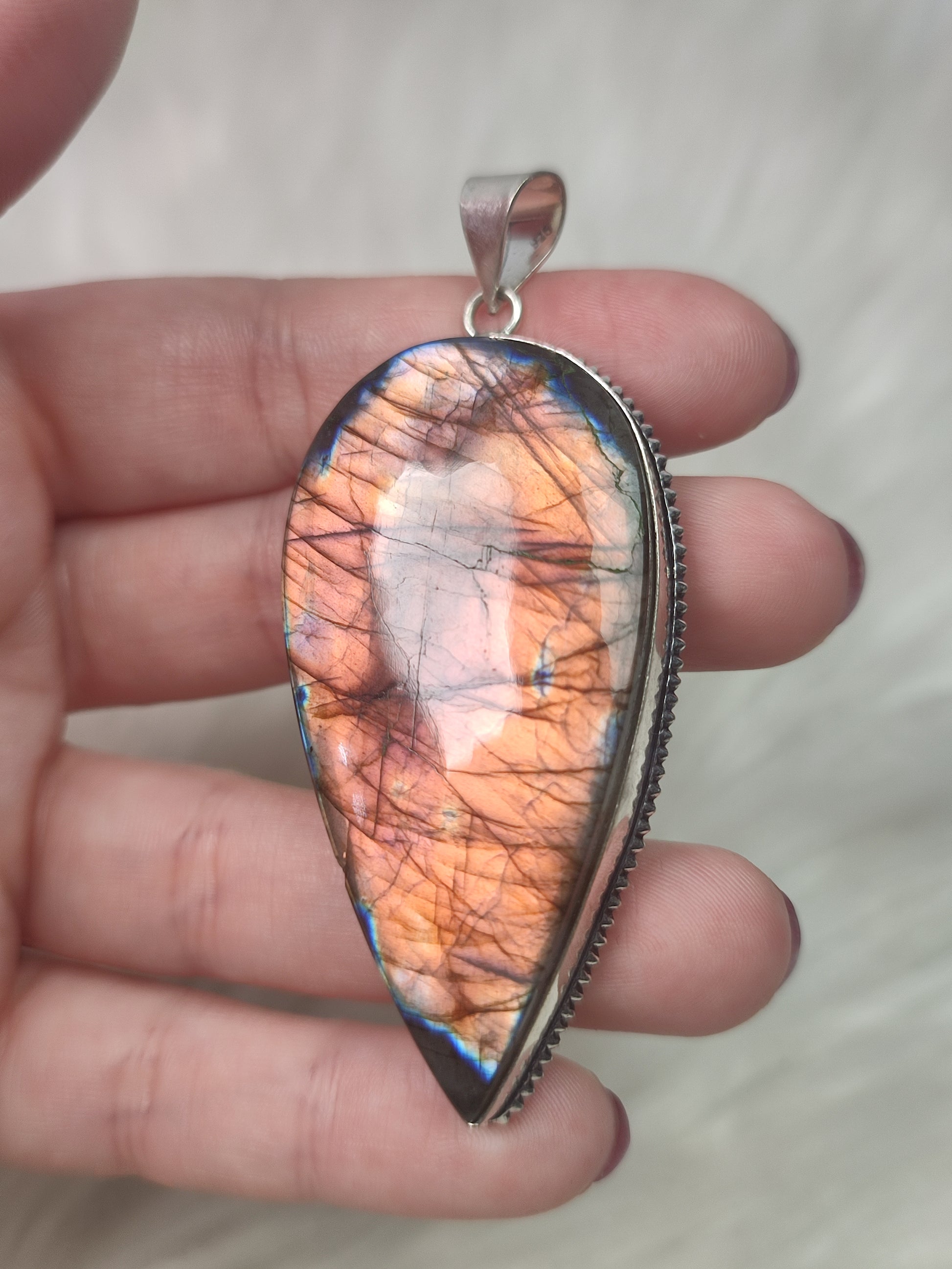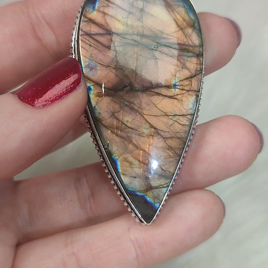 ESPECTACULAR Colgante baño plata con Labradorita multicolor 308 - VIDEO