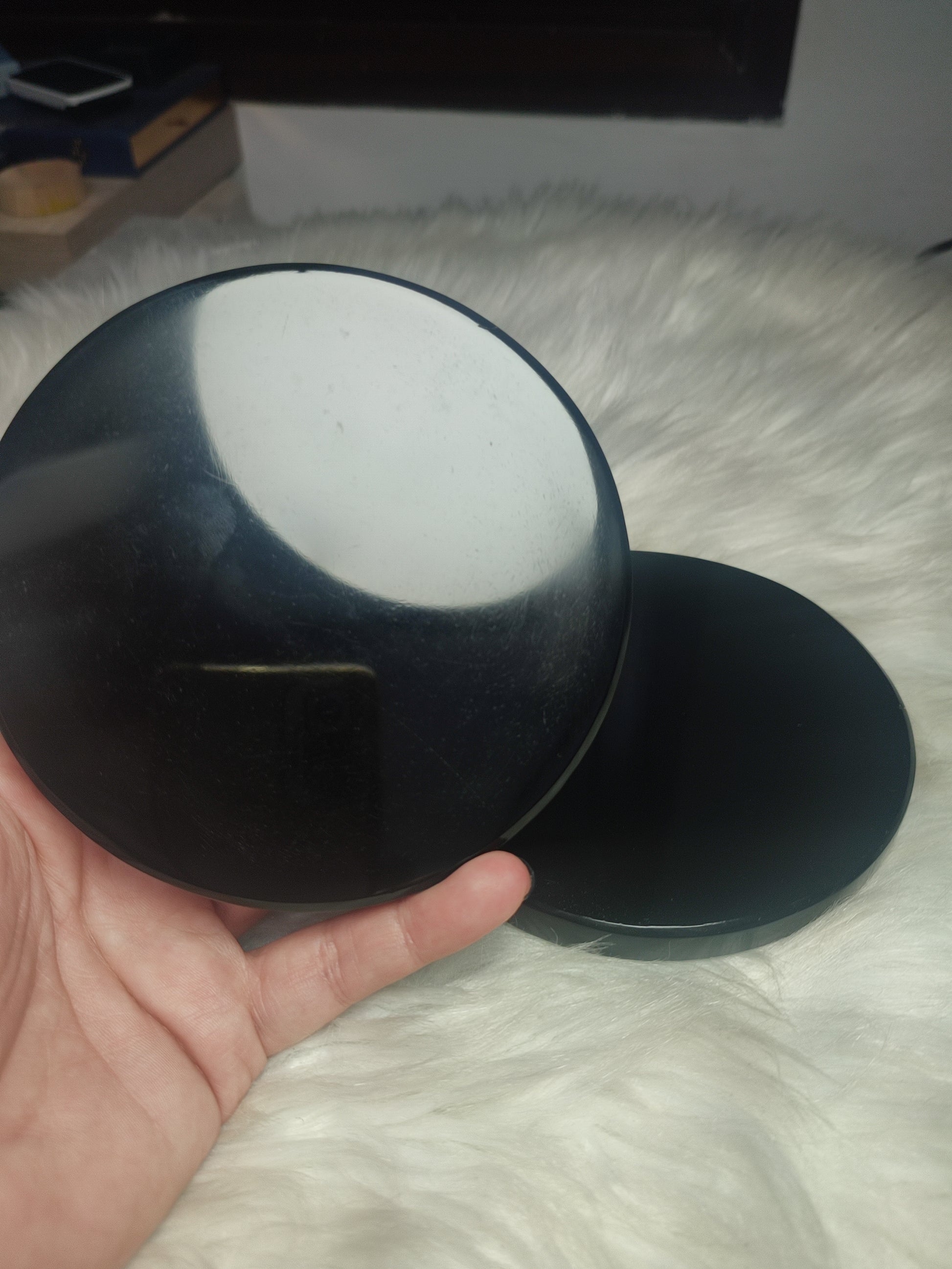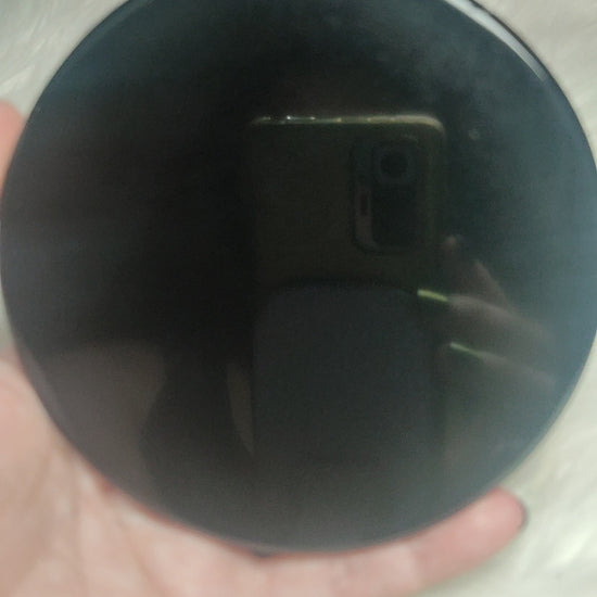 Varias unidades disponibles, esta obsidiana tallada en forma de círculo con calidad "A" significa que la superficie está pulida pero contiene algunas grietas propias del pulido pero de mayor calidad que la obsidiana B.
