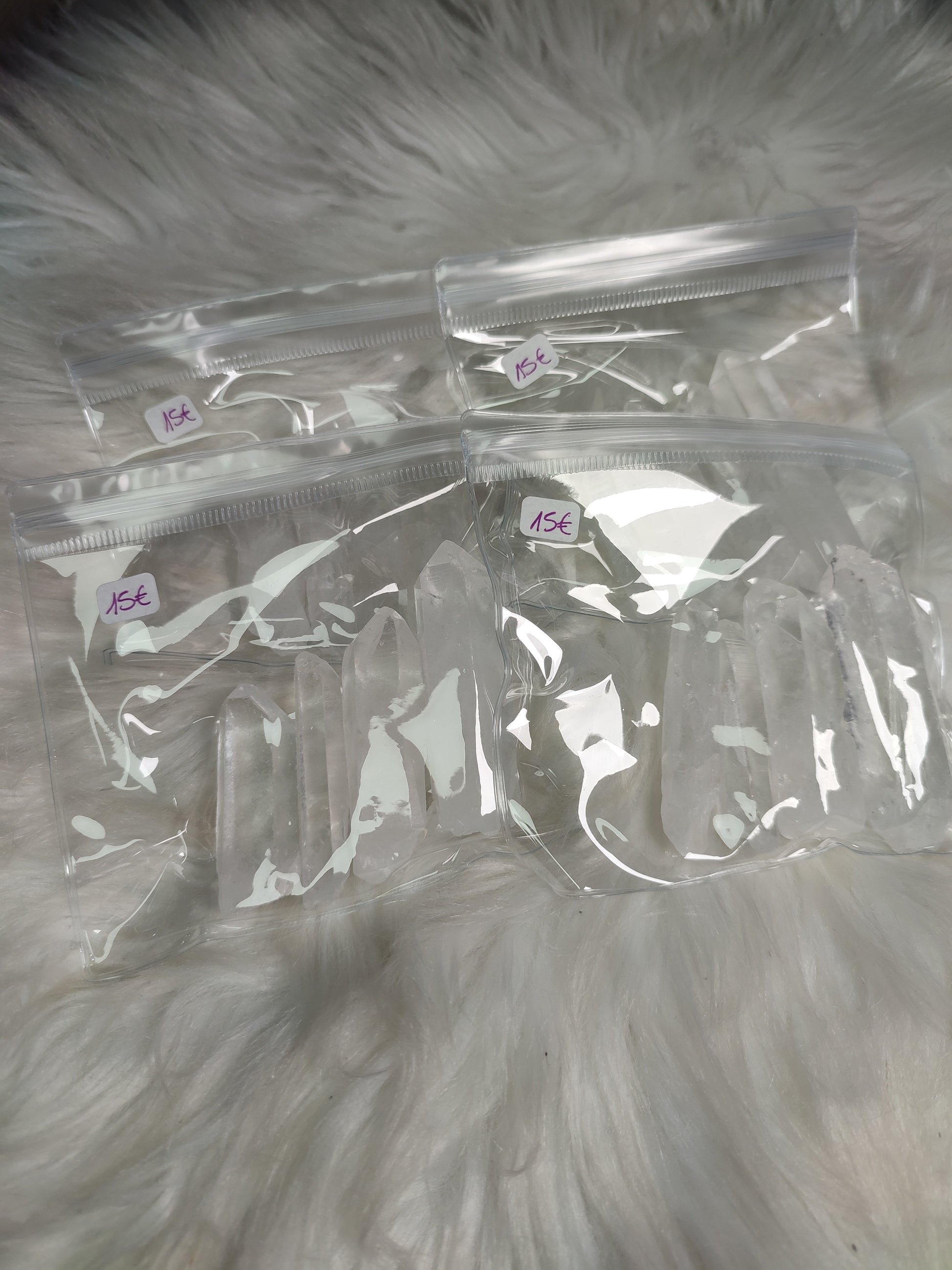 Vienen cuatro varitas láser algunas lemurianas y con otras maestrías son 100 gramos aproximadamente.