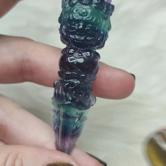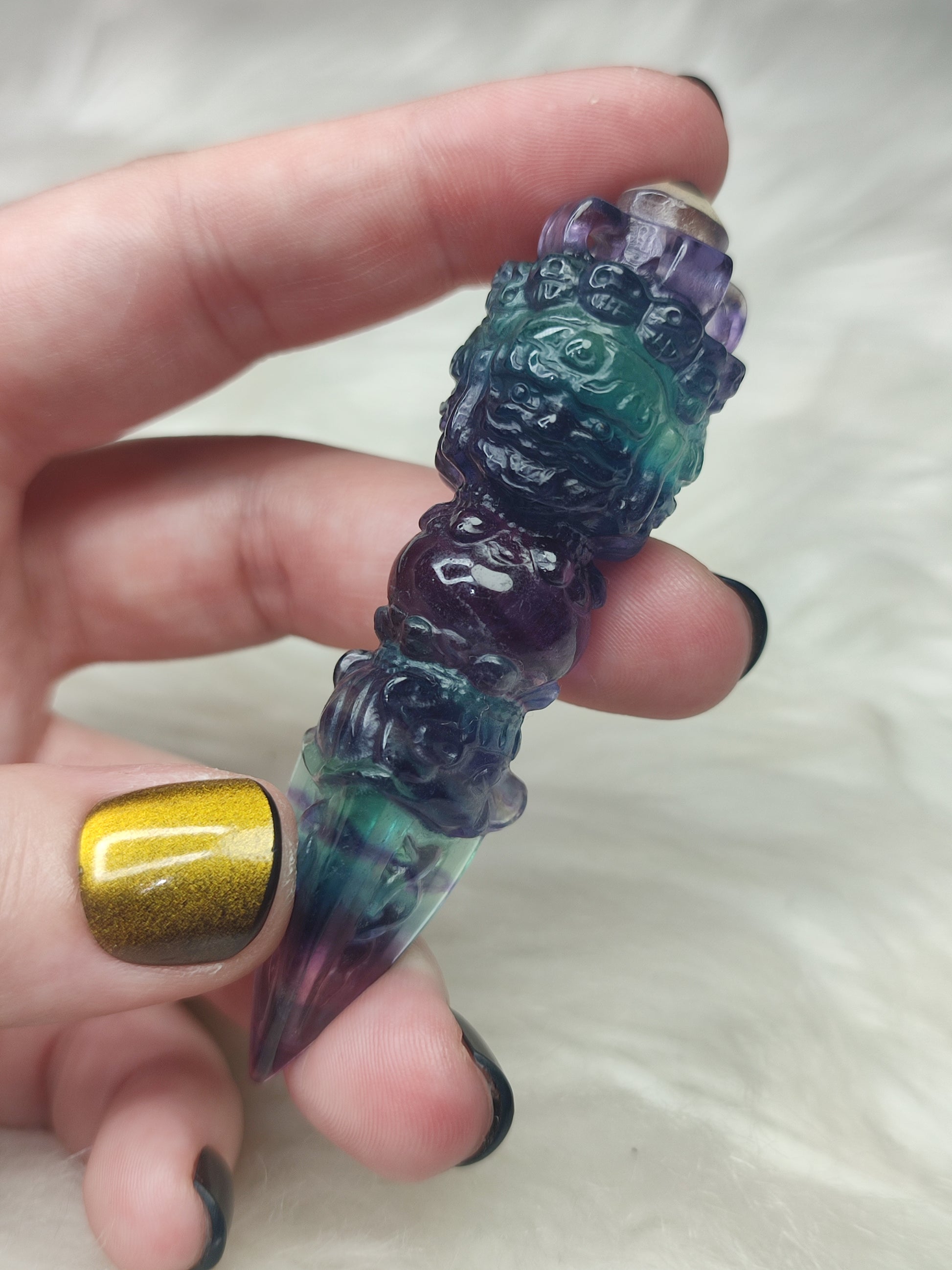 Phurba o daga tallada a mano en fluorita multicolor alta calidad
