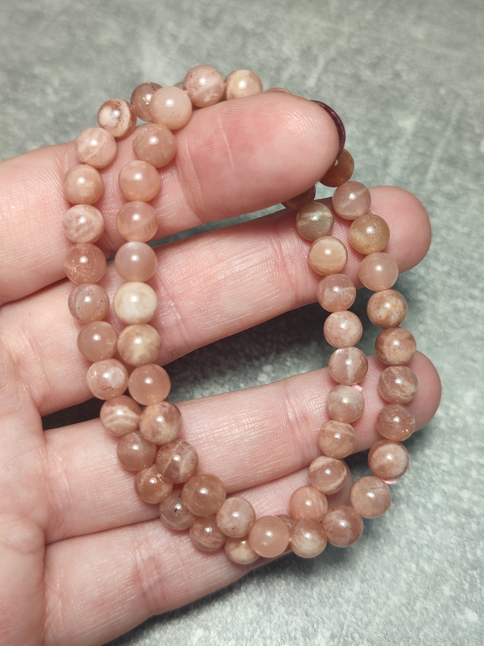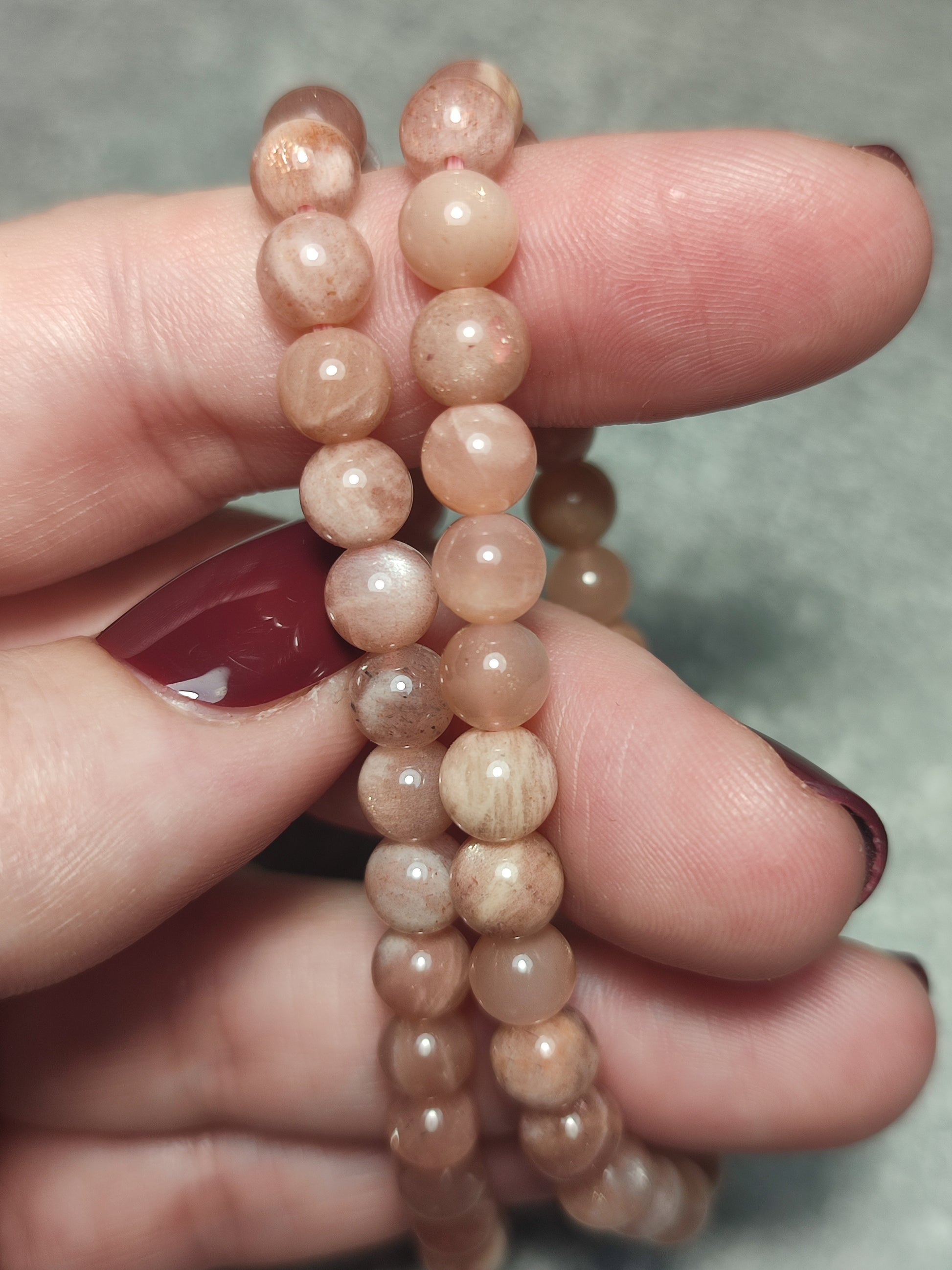 Pulsera elástica bolas 6 mm - Piedra Luna melocotón mix sol