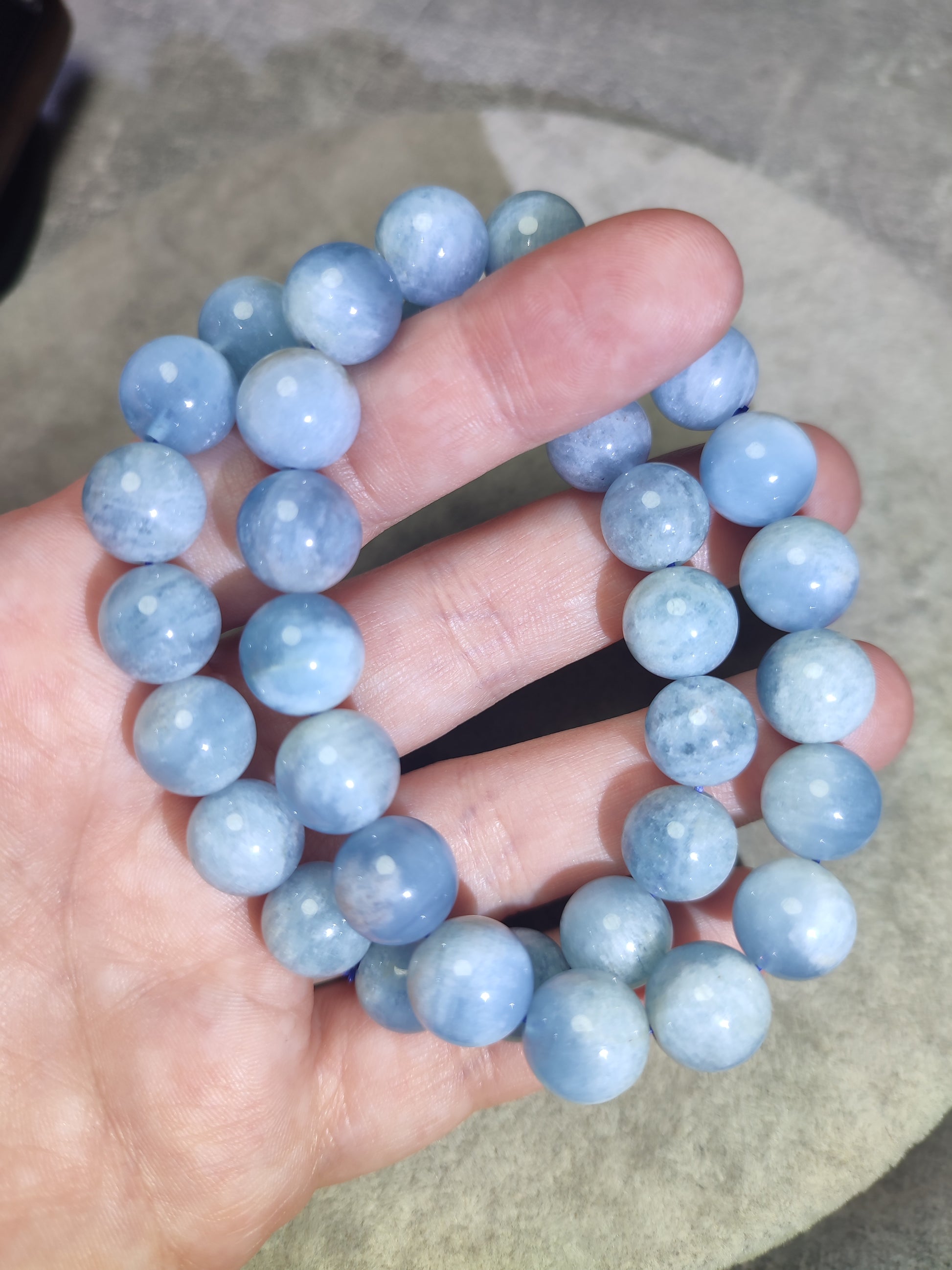 Pulsera elástica esferas de aguamarina 11/12 mm