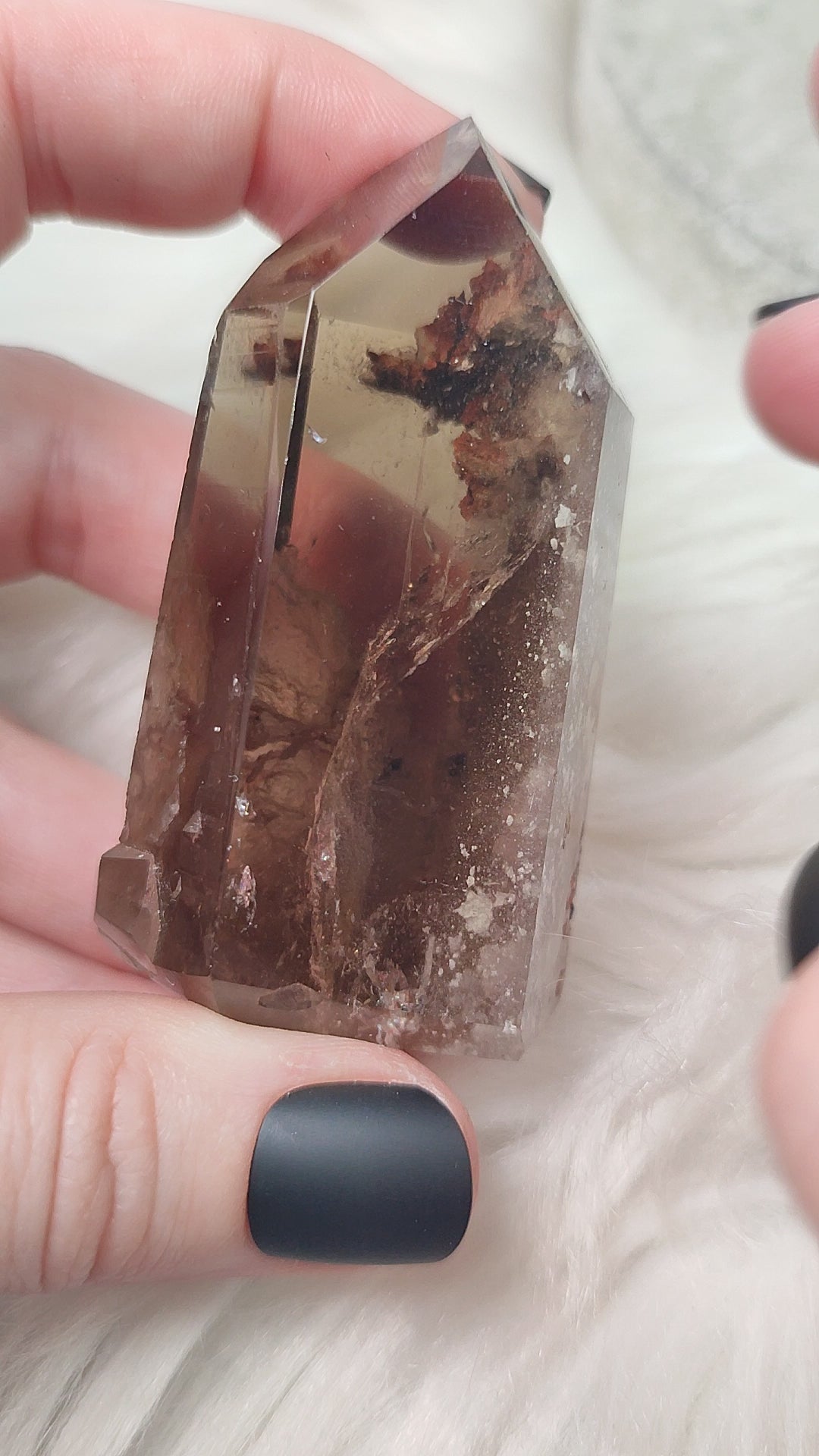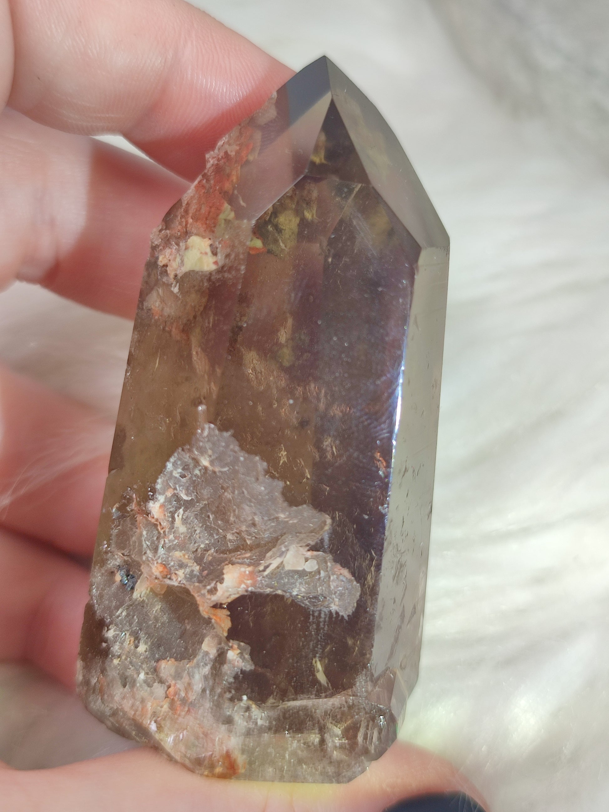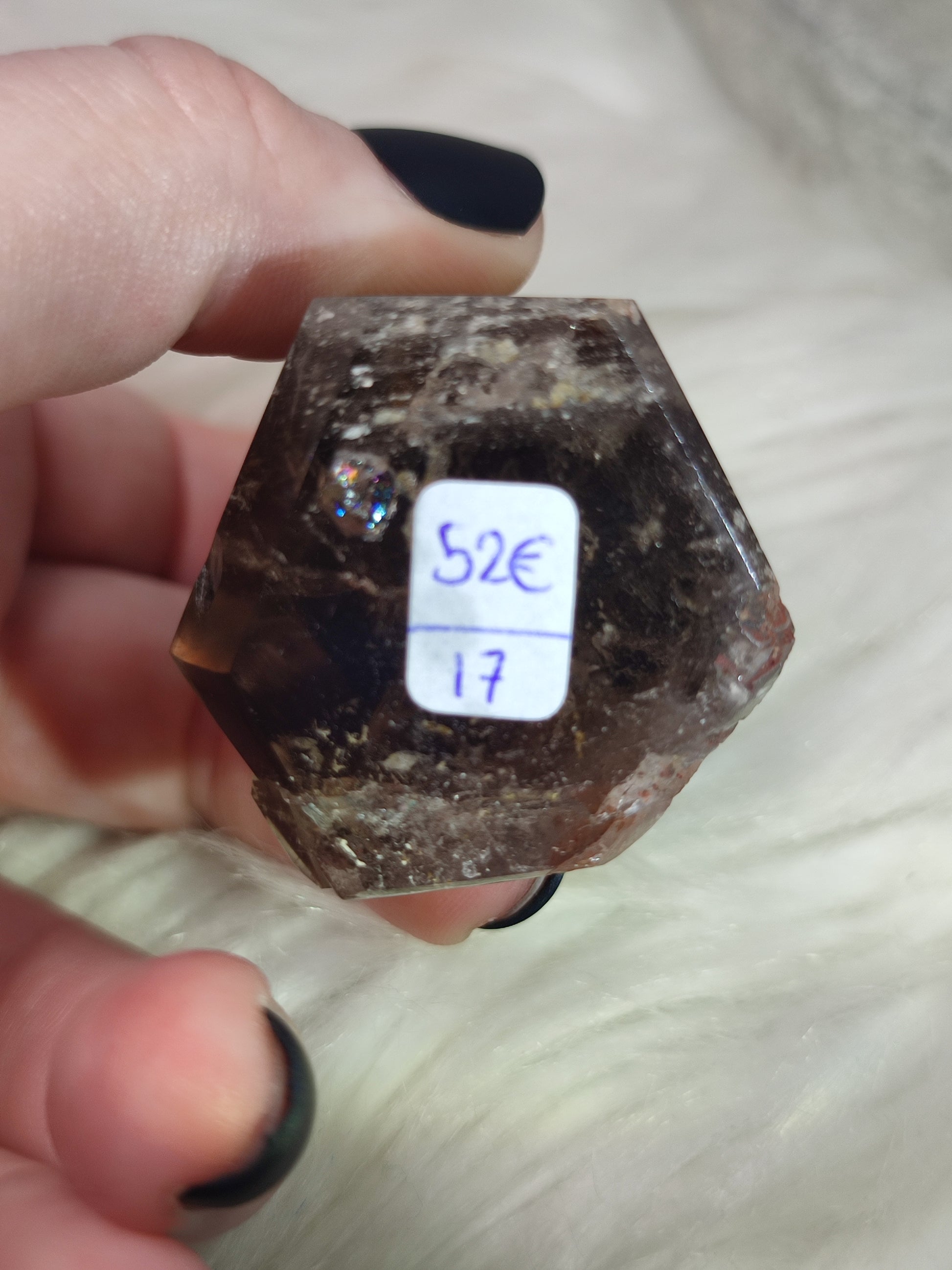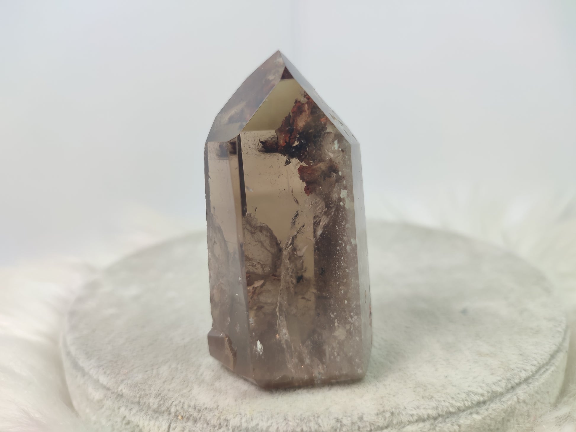 Punta cuarzo jardín ahumado con cuarzo en cuarzo - n° 17