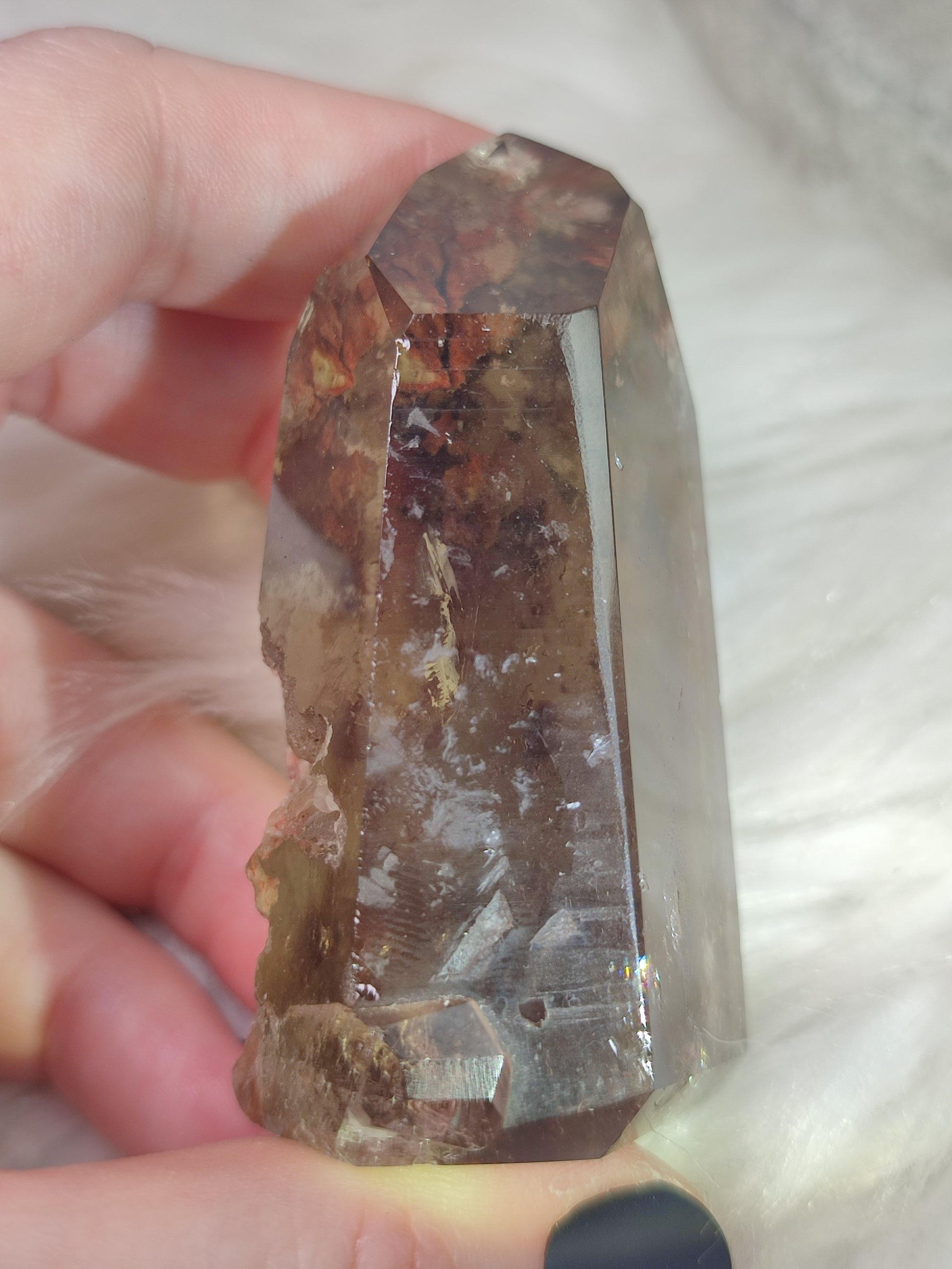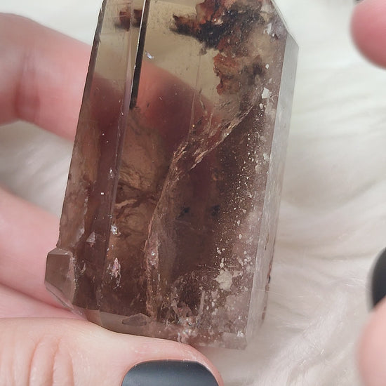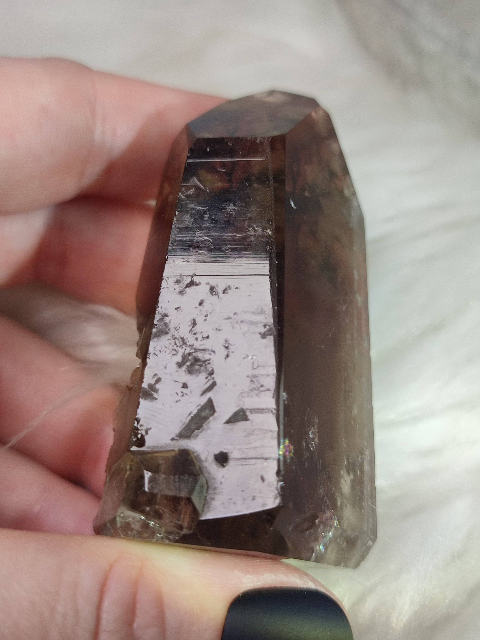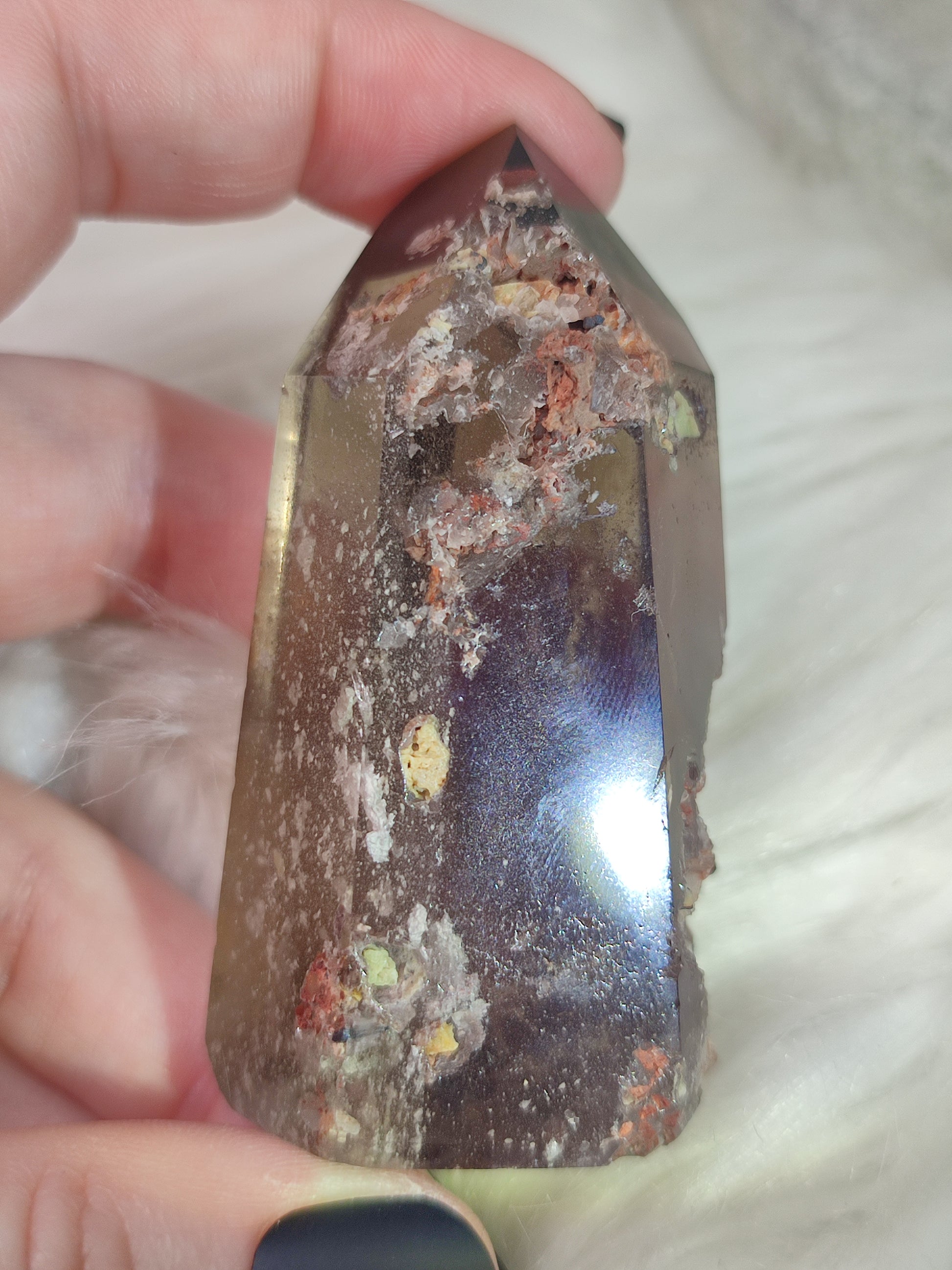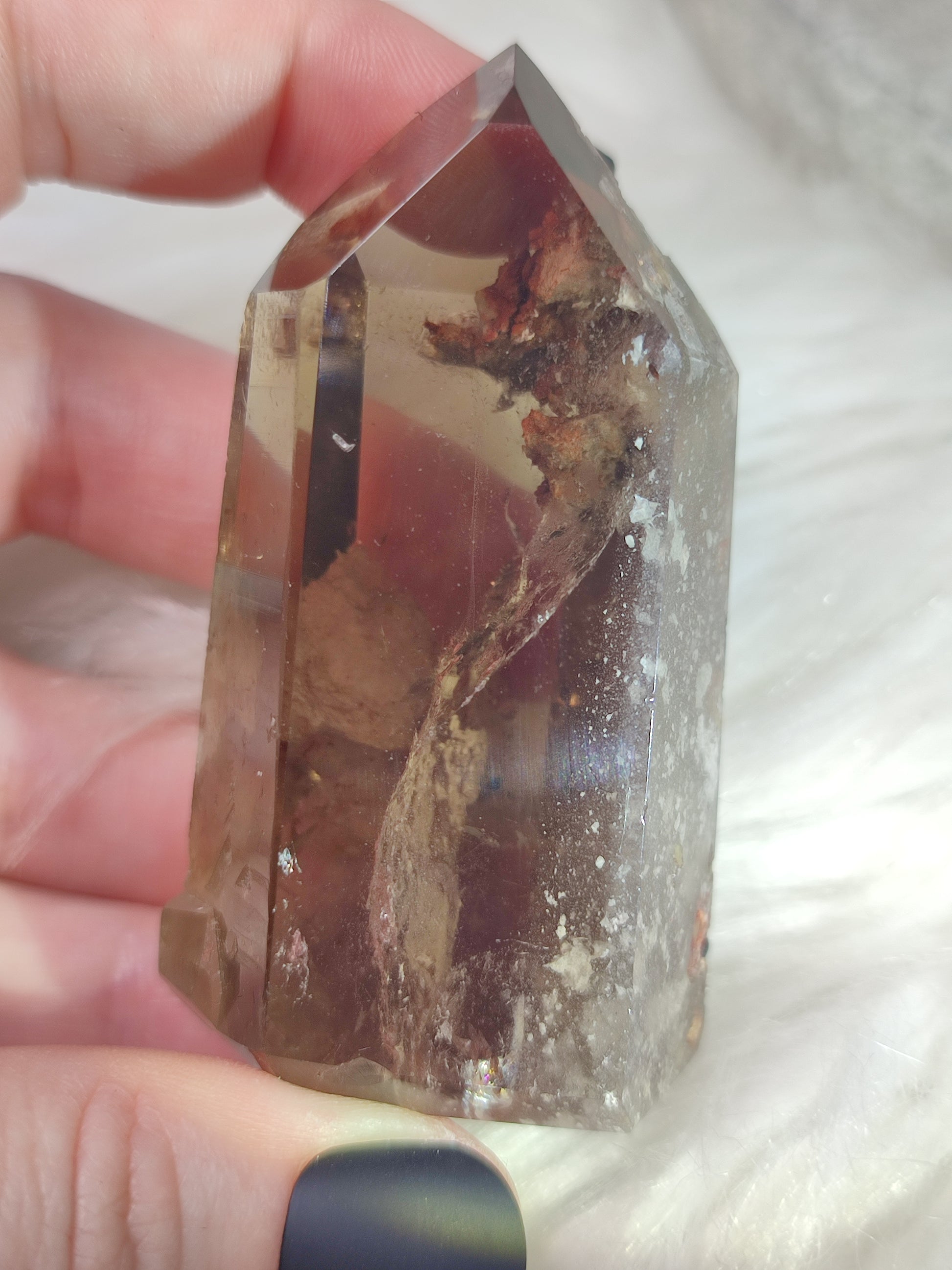 Punta cuarzo jardín ahumado con cuarzo en cuarzo - n° 17