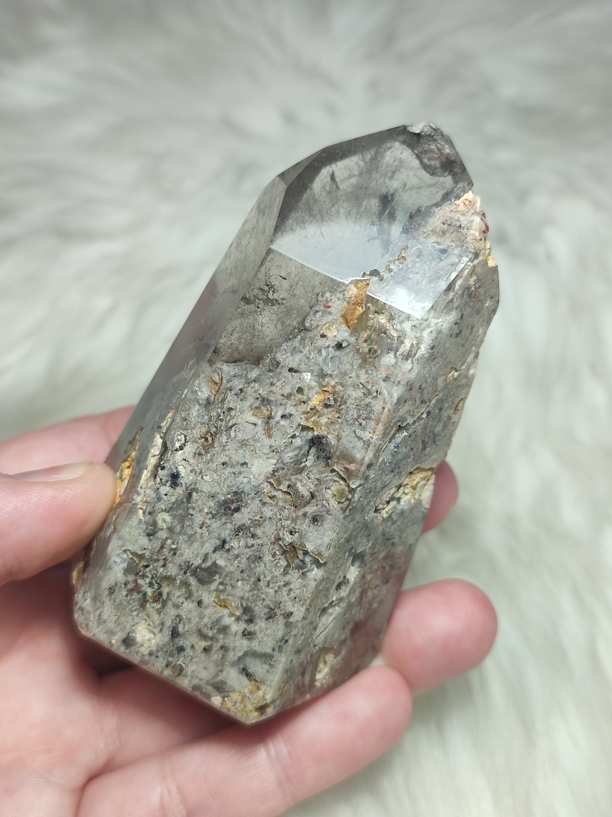 Punta de cuarzo jardín o también denominado cuarzo chamánico procedente de Brasil.