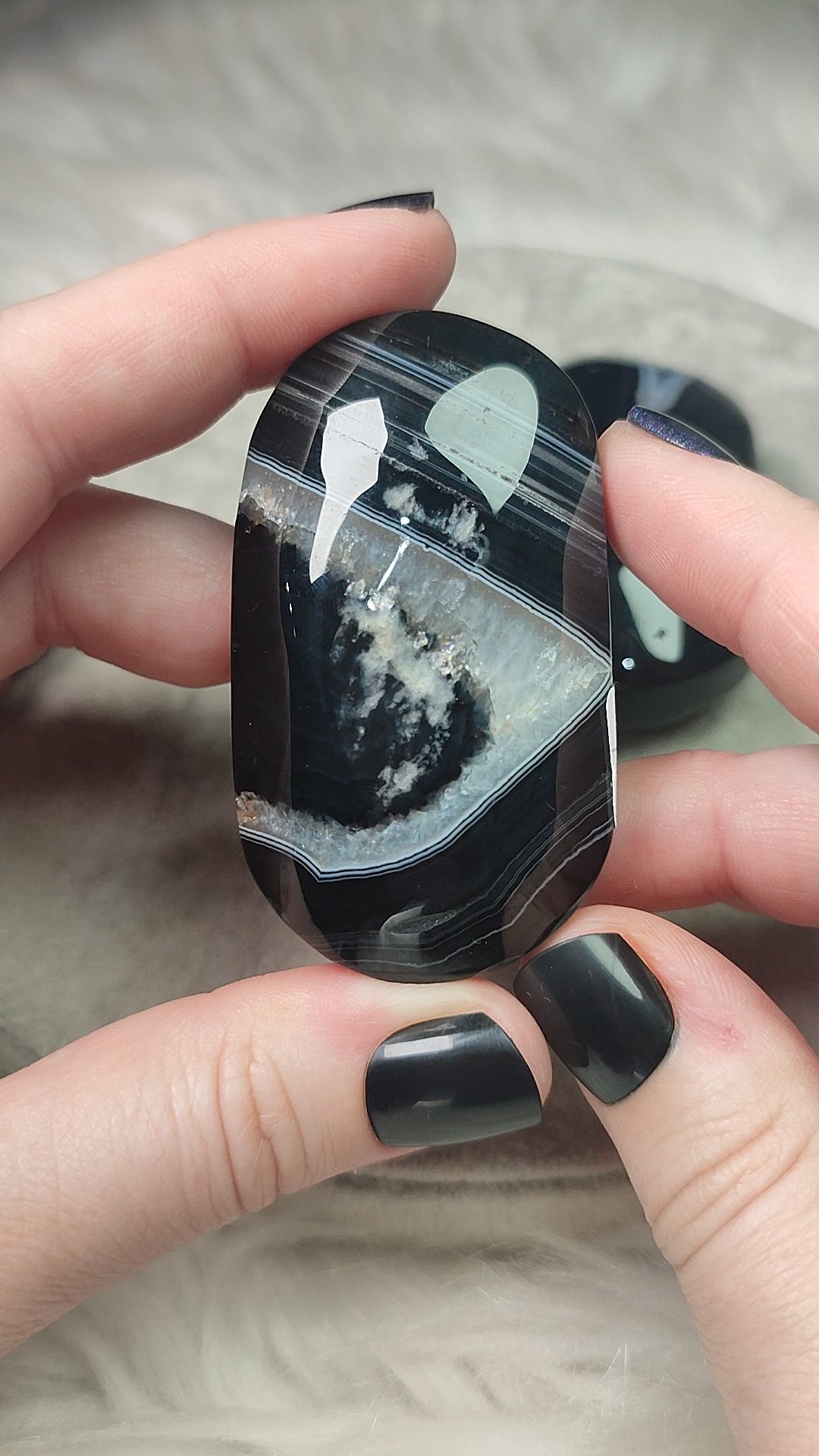 Rodado jabon ágata negra con cristalización - VIDEO