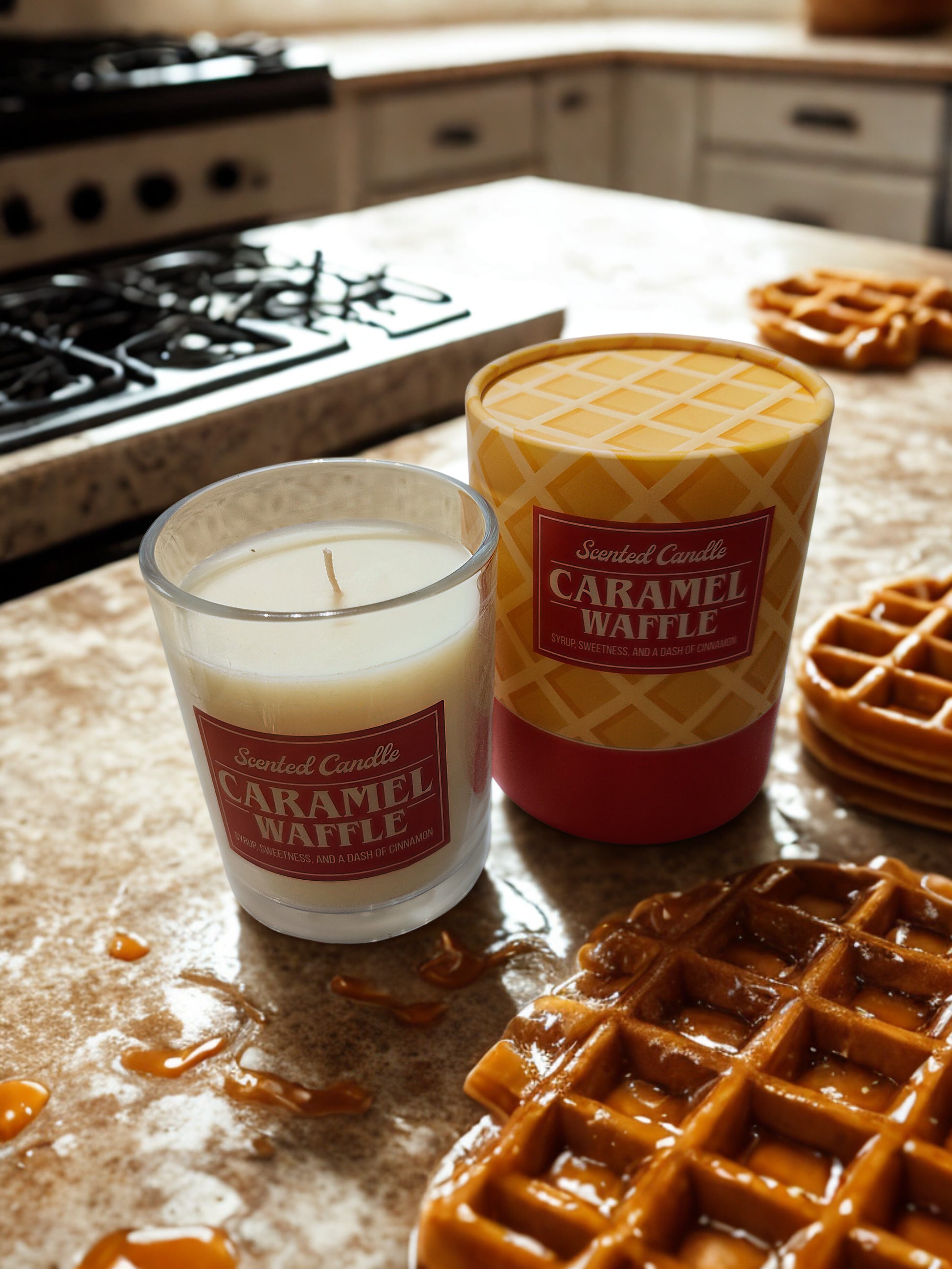 Esta vela con aroma a Caramel Waffle envuelve tu hogar con notas de gofre recién hecho, caramelo fundido y un toque avainillado, creando una atmósfera acogedora y deliciosa.